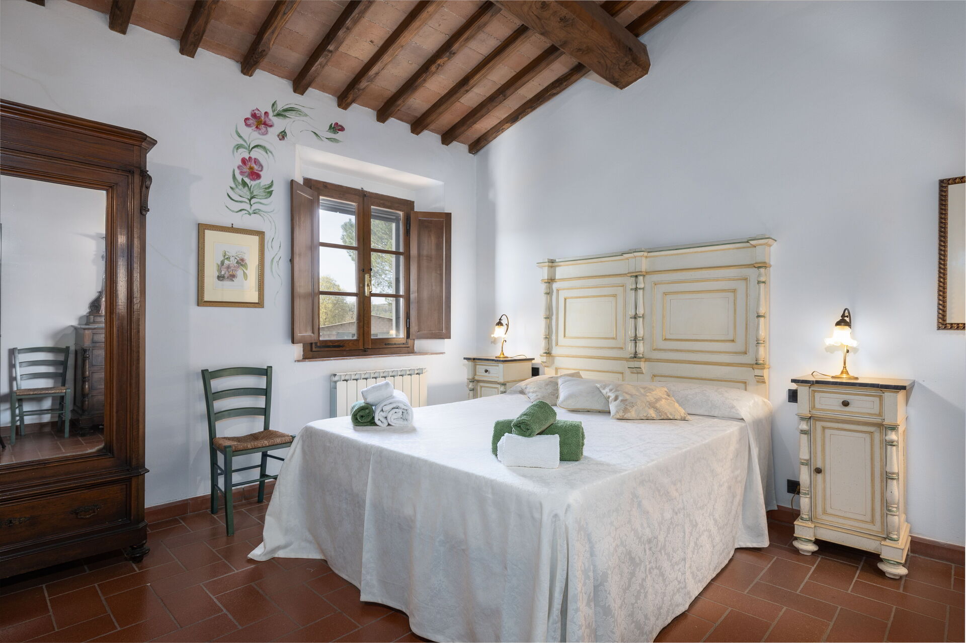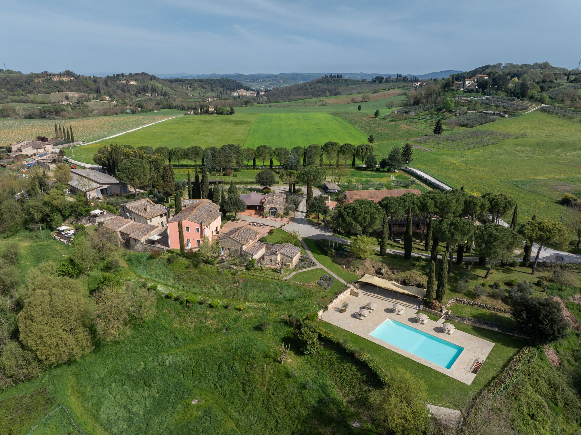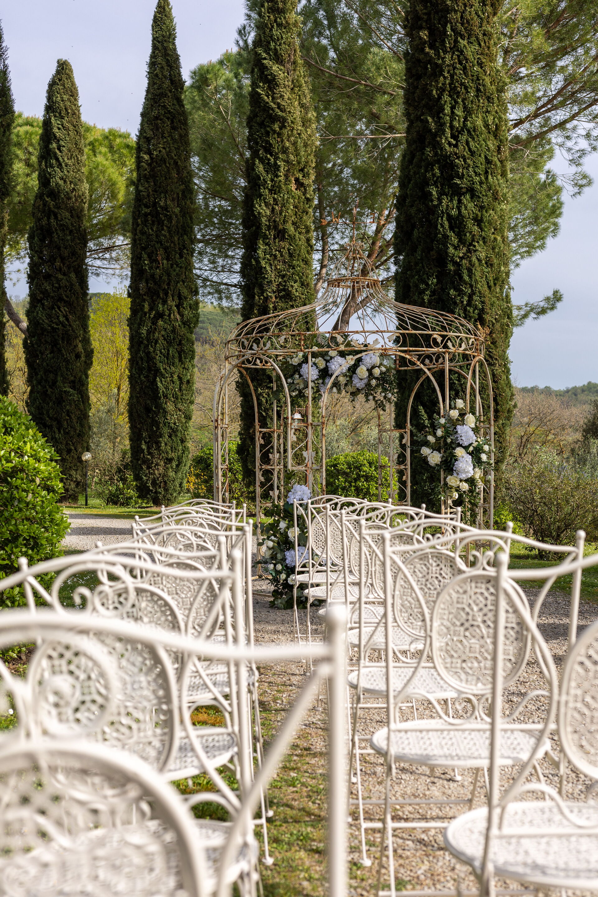 Op het terrein is er een privézwembad om heerlijk te genieten en te luieren in de dagen rond de huwelijksceremonie, grasvelden waar spelletjes kunnen worden gespeeld, een Italiaanse tuin waar huwelijksceremonies en symbolische ceremonies kunnen plaatsvinden, een sfeervol betegeld terras waar tafels kunnen worden opgezet voor bruiloften buiten en lekker buiten dineren, en veel leuke hoekjes met tafels en stoelen waar je vrienden en families kunnen ontspannen en tot rust kunnen komen tijdens hun verblijf in Toscane. Het voordeel van een huwelijk in Italië is natuurlijk dat iedereen ook van een vakantie kan genieten!