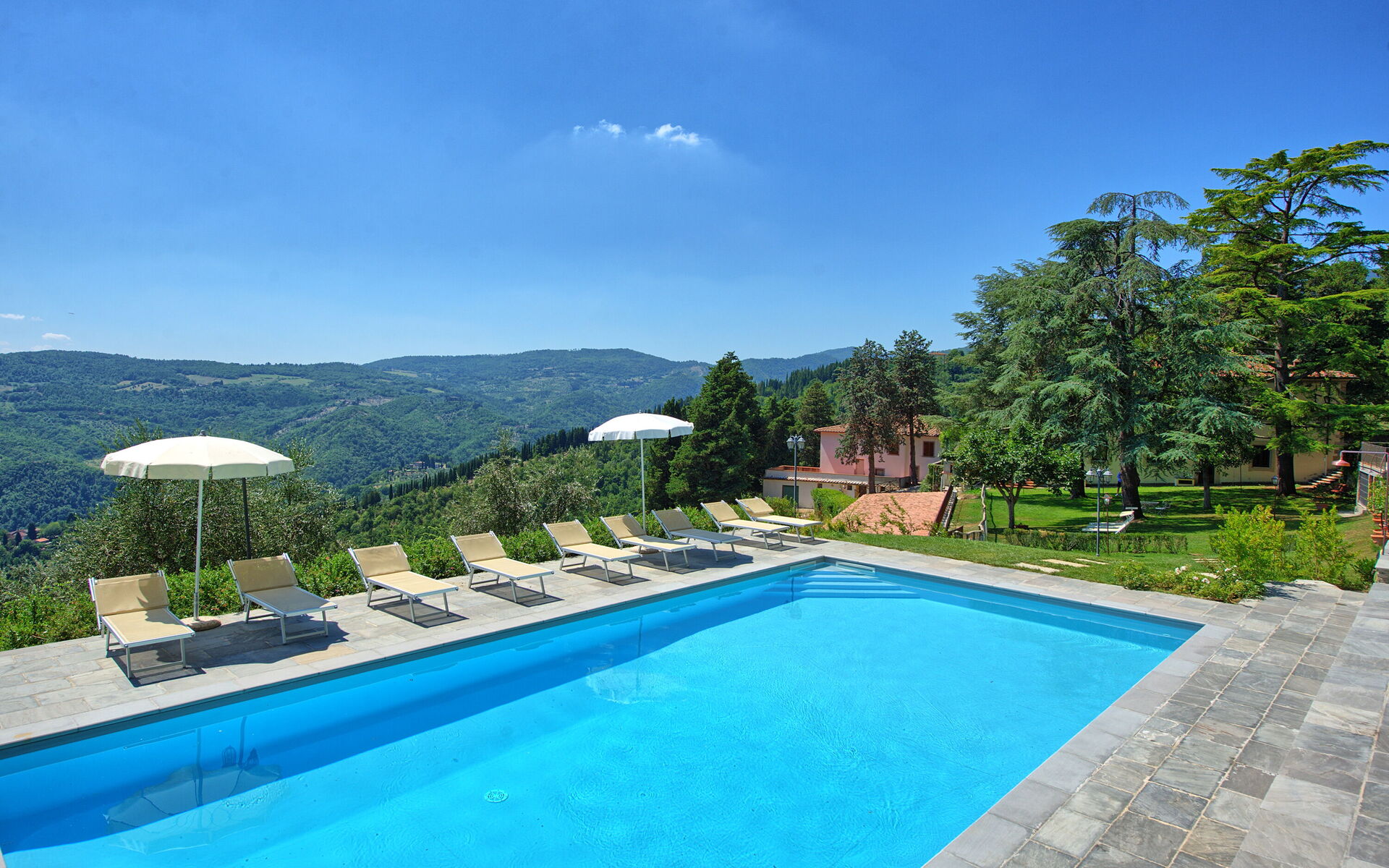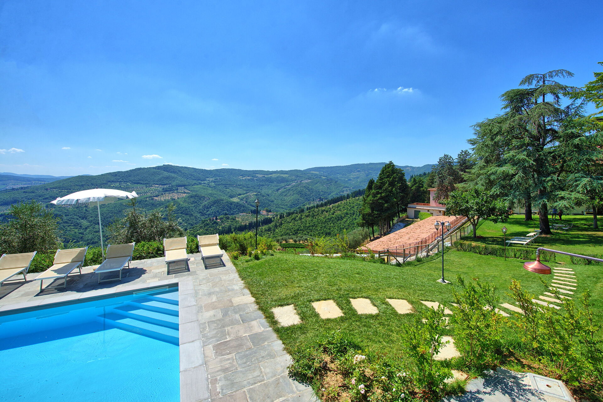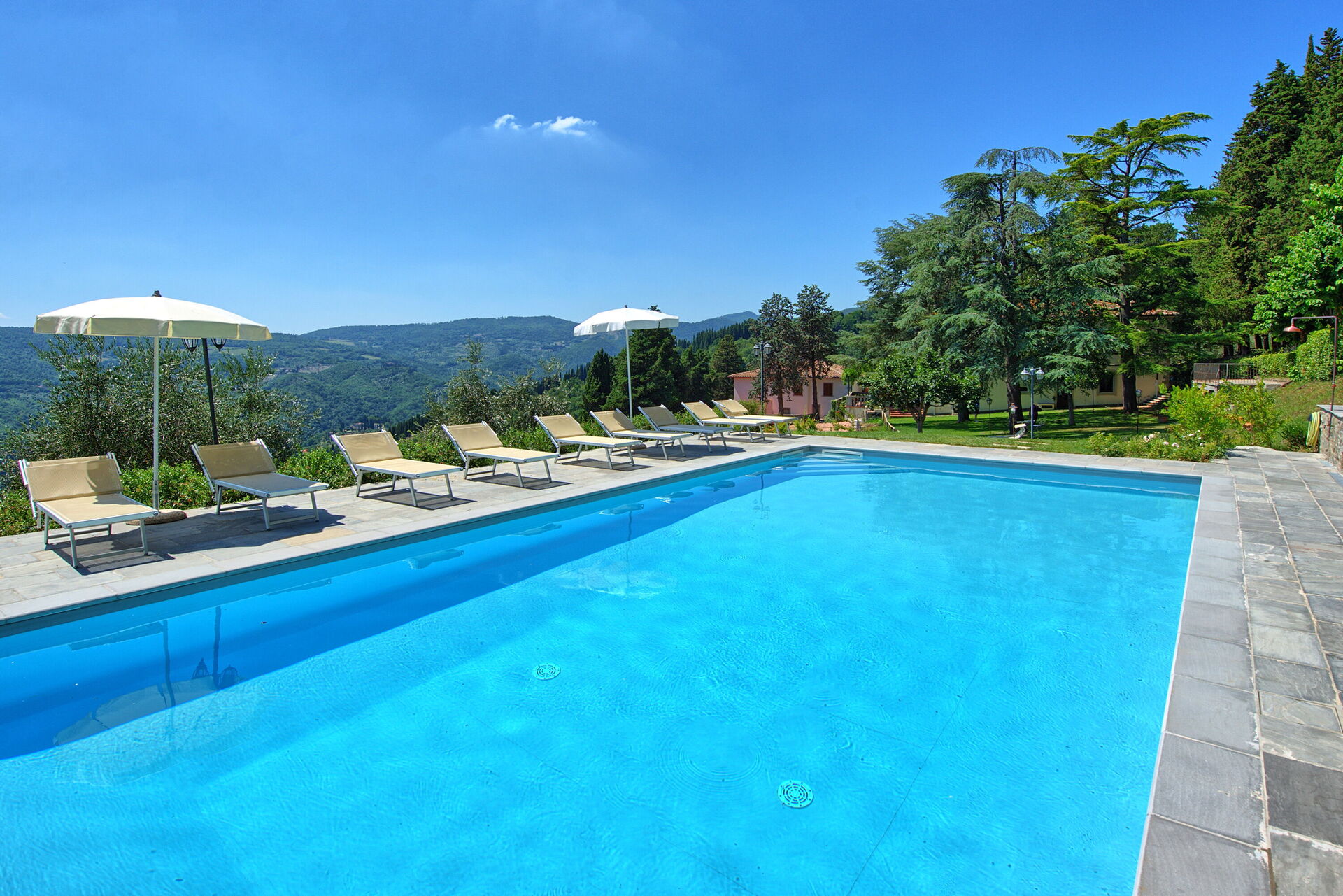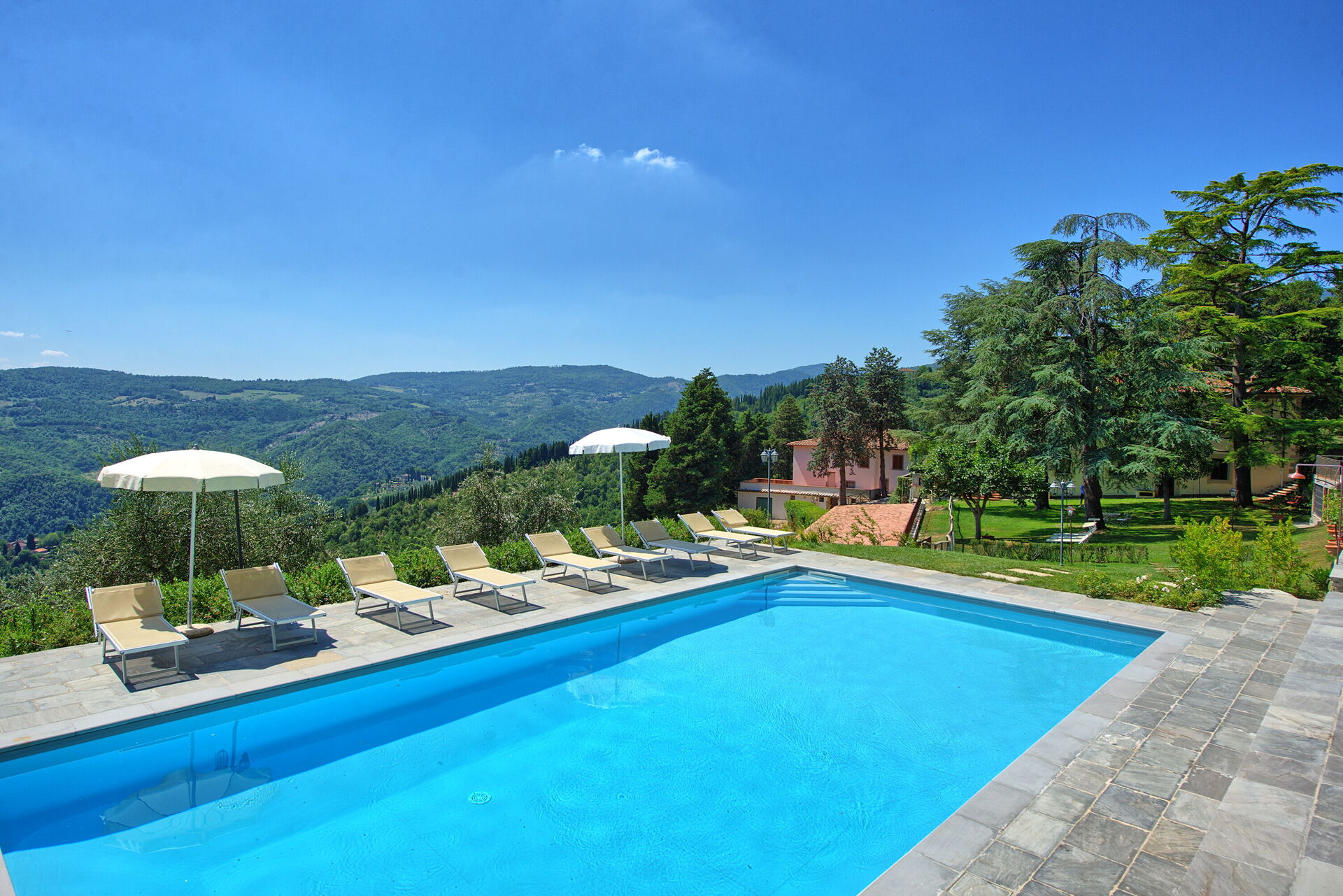 Ruime villa met 8 slaapkamers en privé zwembad op circa 25 km van Florence gelegen, en met een panoramisch uitzicht op de heuvels die uitkijken op Val di Sieve.