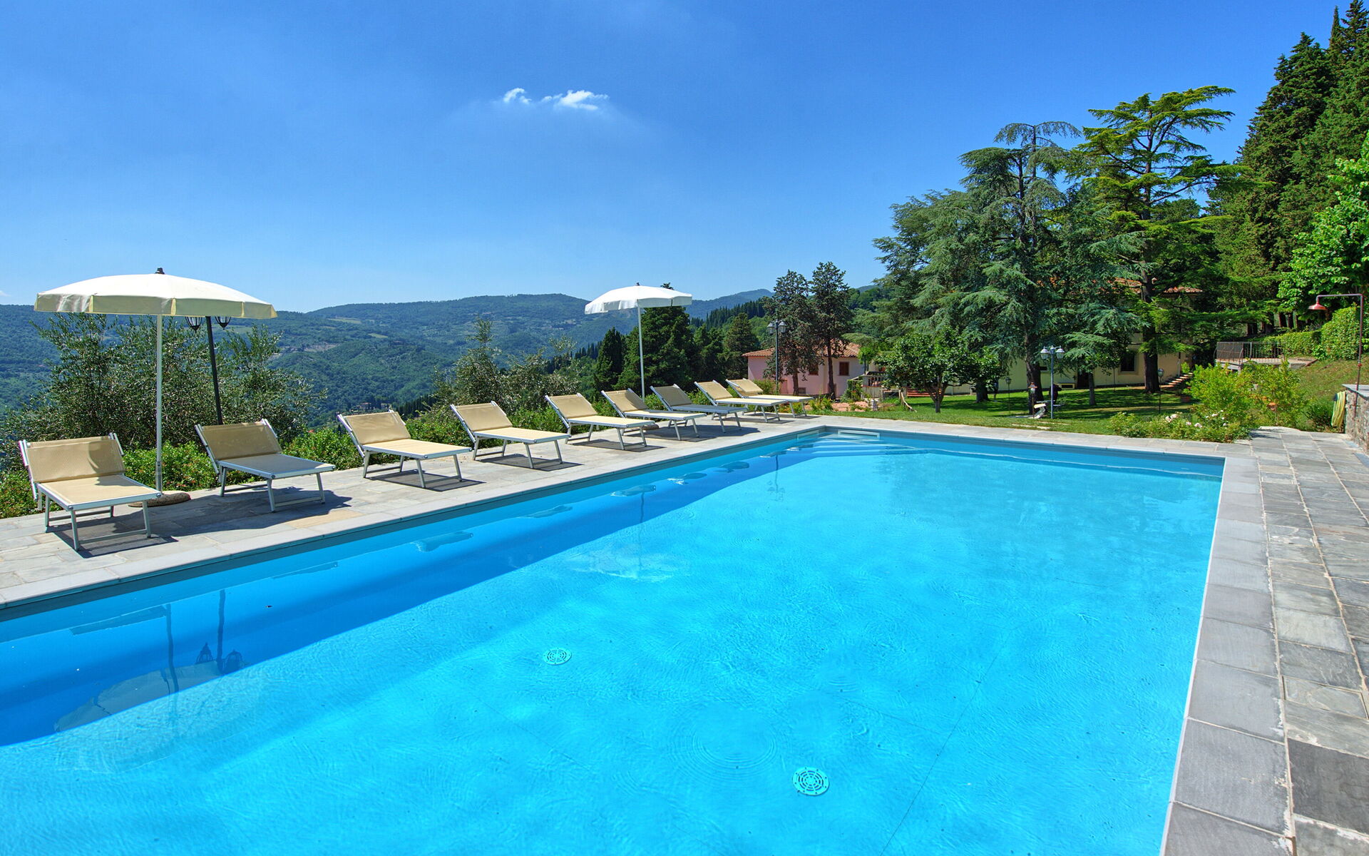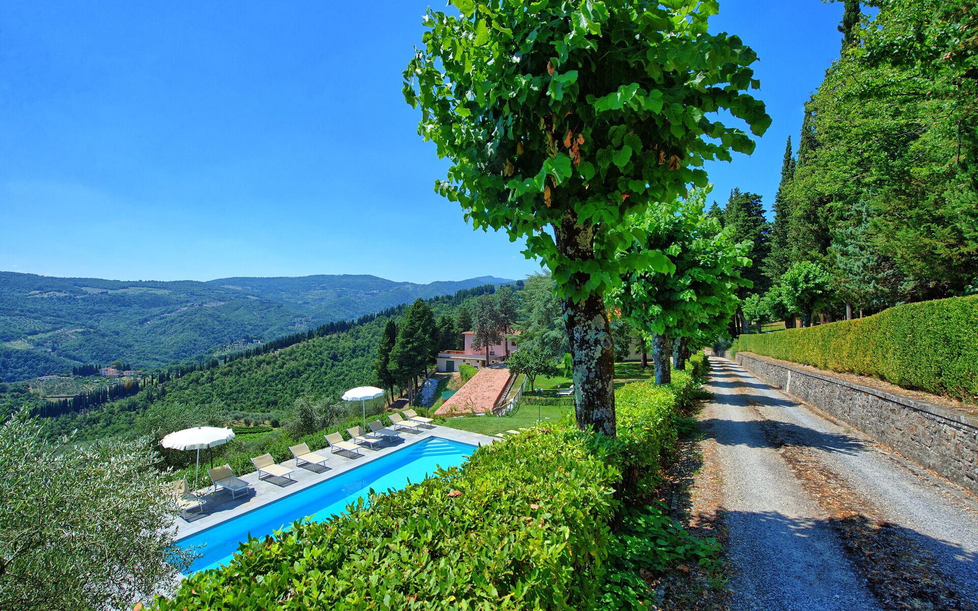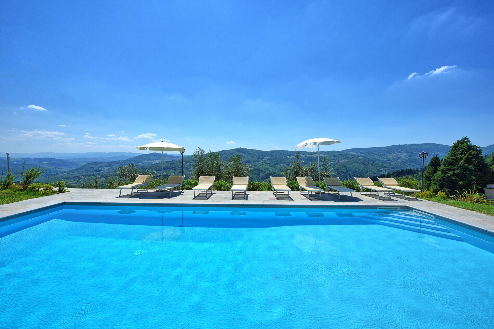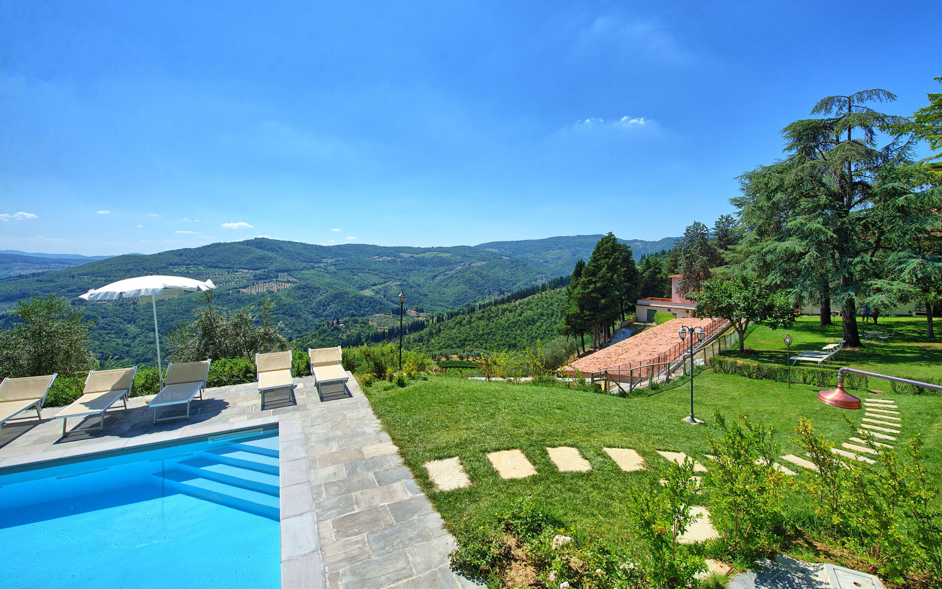 Ruime villa met 8 slaapkamers en privé zwembad op circa 25 km van Florence gelegen, en met een panoramisch uitzicht op de heuvels die uitkijken op Val di Sieve.