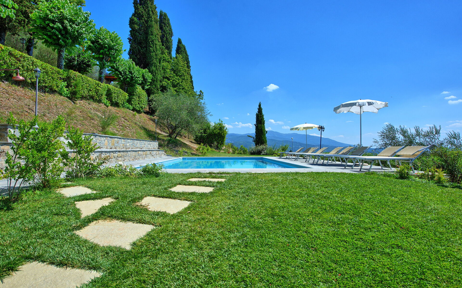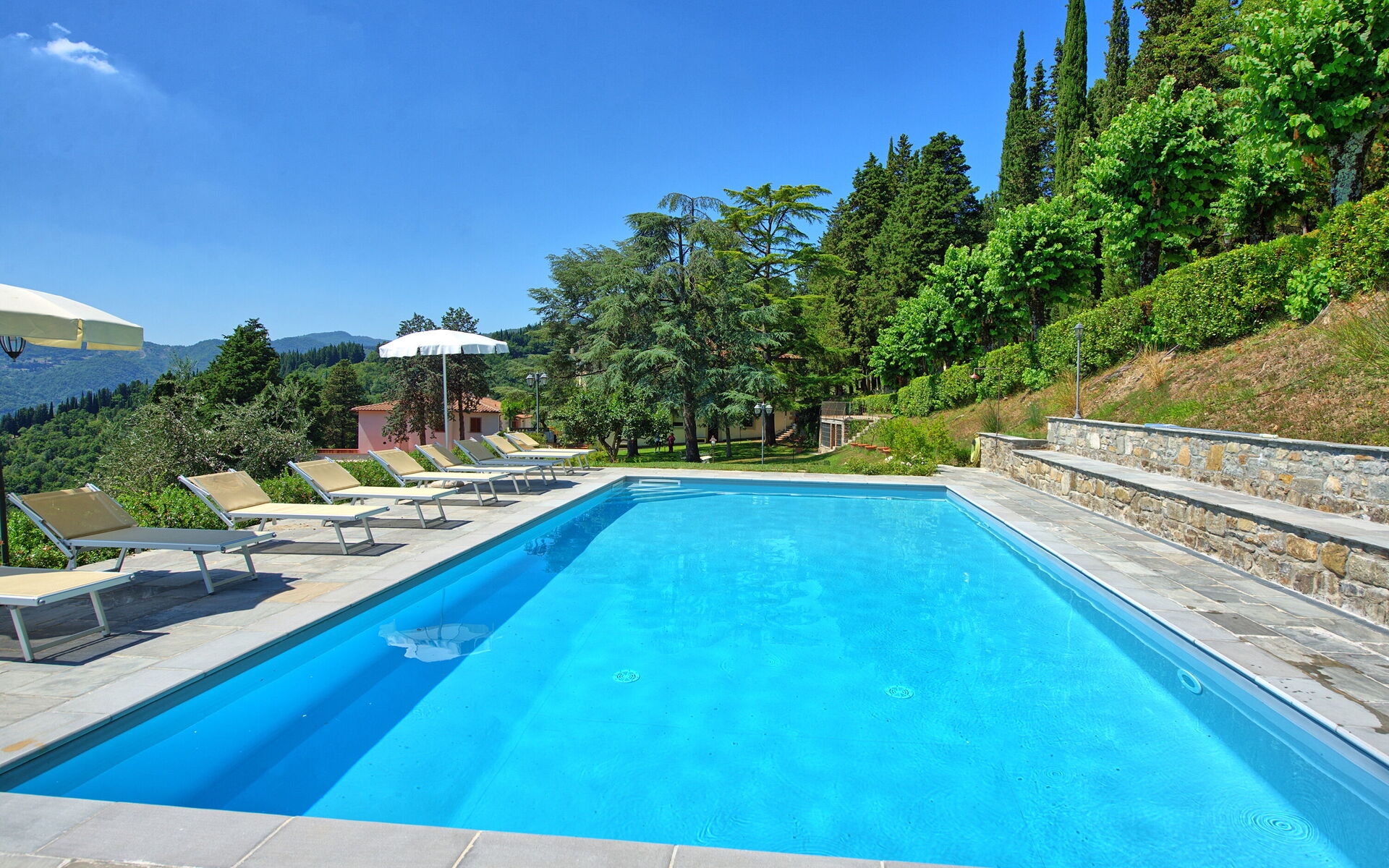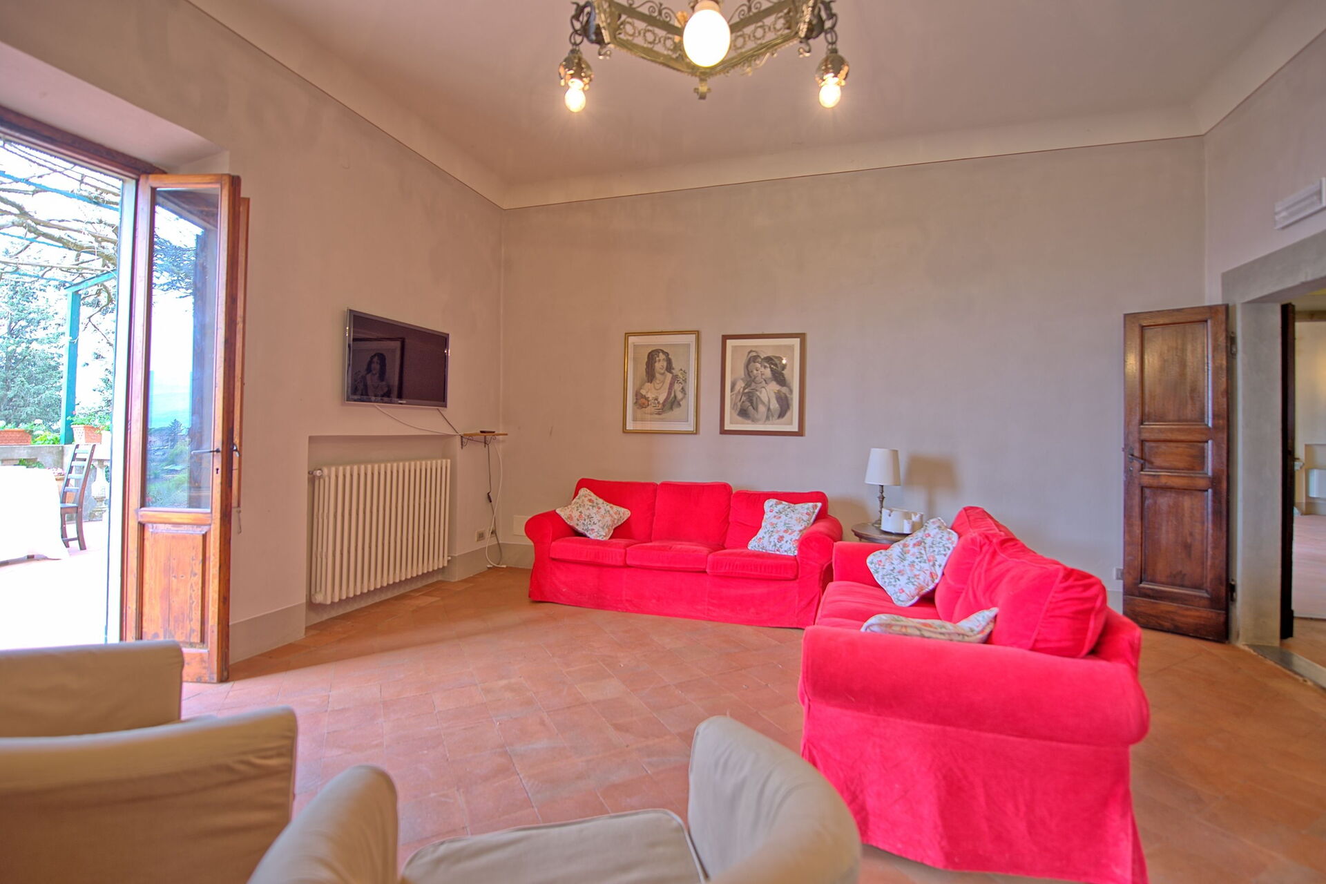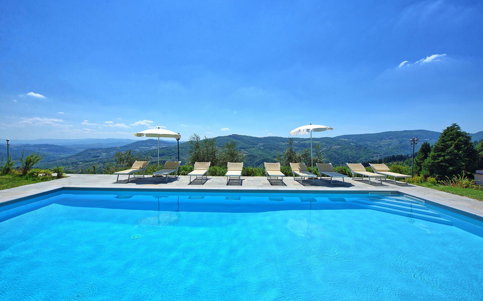 Ruime villa met 8 slaapkamers en privé zwembad op circa 25 km van Florence gelegen, en met een panoramisch uitzicht op de heuvels die uitkijken op Val di Sieve.