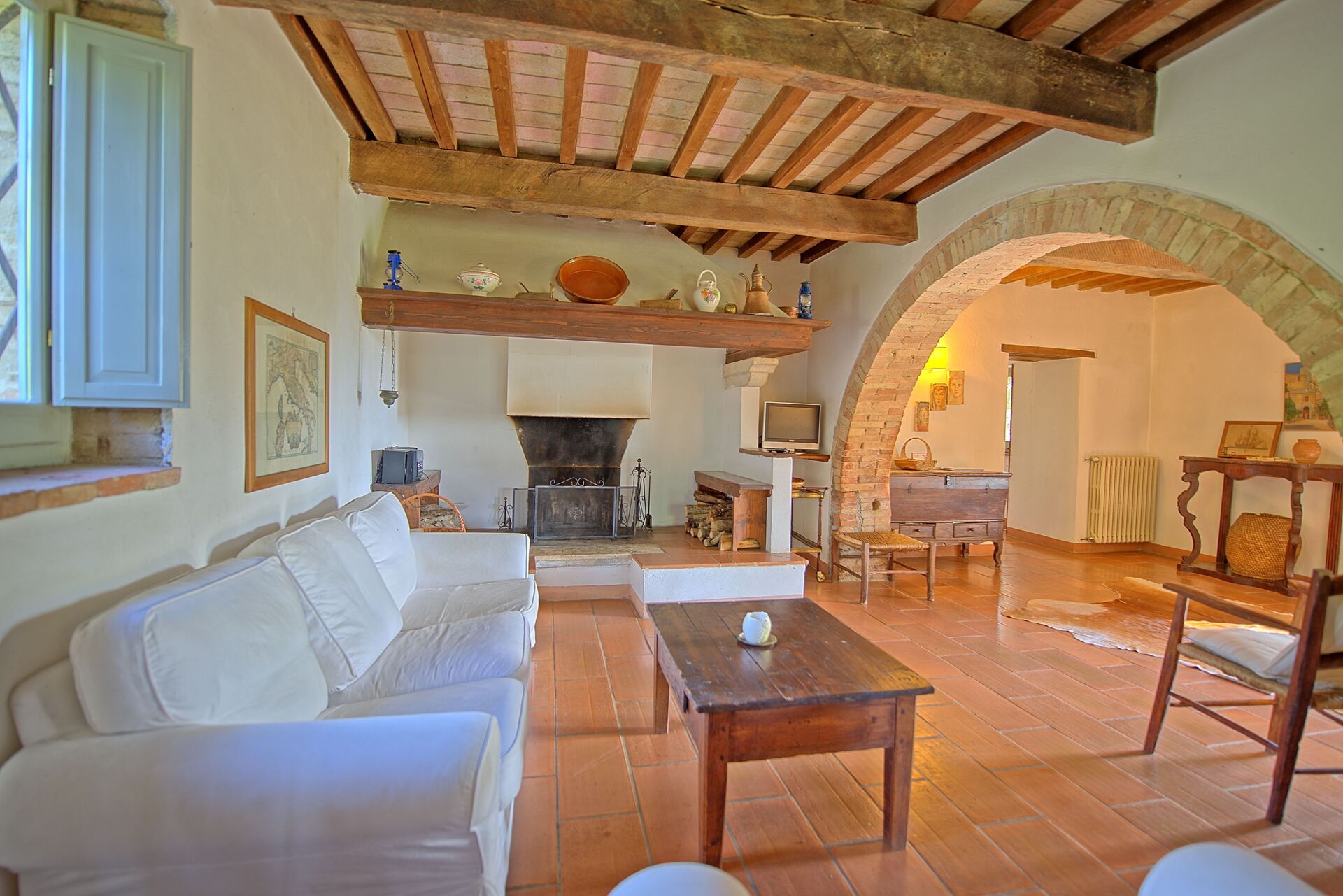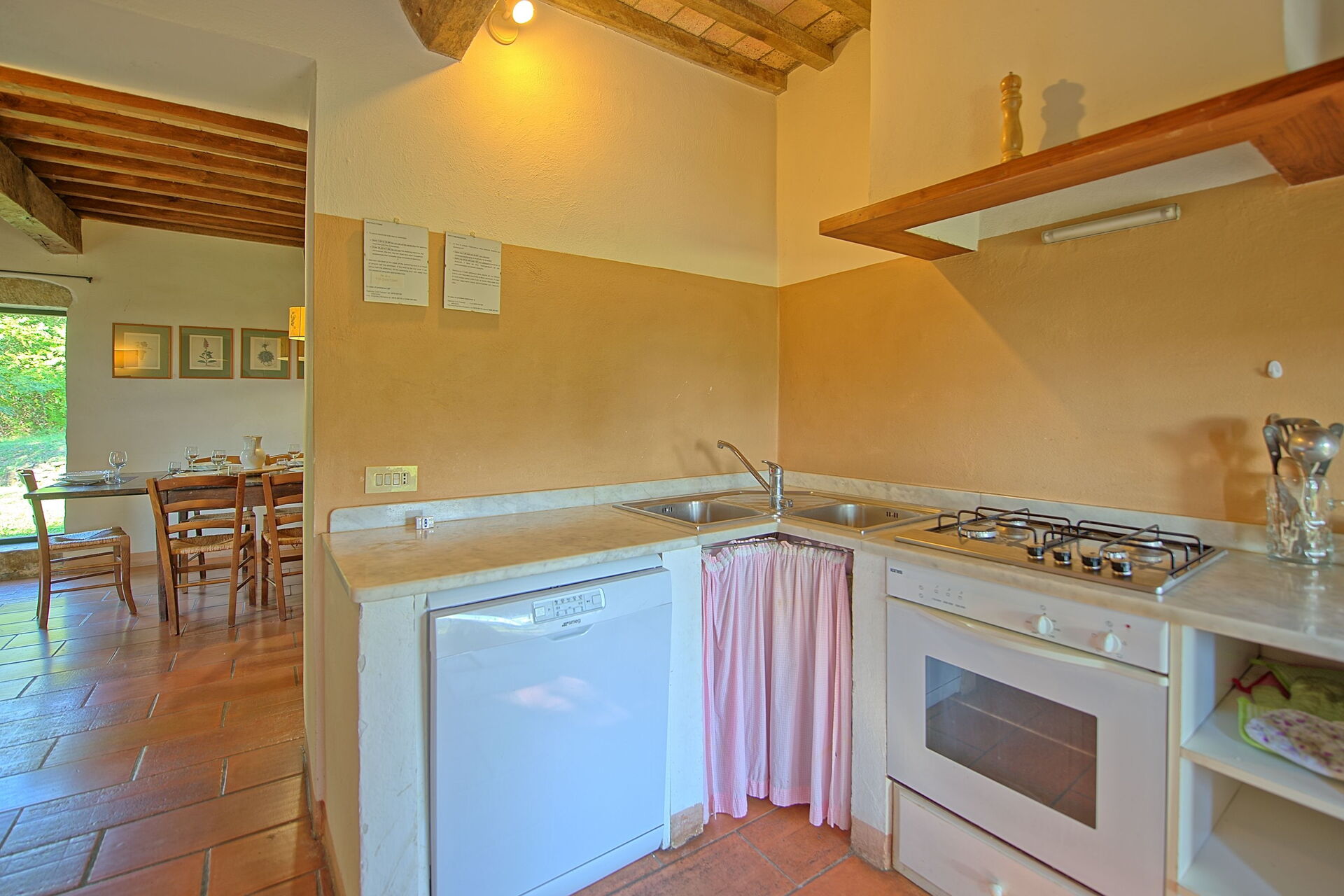 Boerenhuis voor 6 personen gelegen in het midden van Toscane. De dichtstbijzijnde plaats is San Casciano dei Bagni, beroemd vanwege de thermen baden. Het huis ligt middenin de natuur en men geniet er van de absolute rust. Het panoramisch gelegen zwembad ligt op enkele meters van het huis. Op enkele honderden meters van het huis ontspringt een riviertje met thermaal water. Men bereikt het huis over een korte onverharde weg.