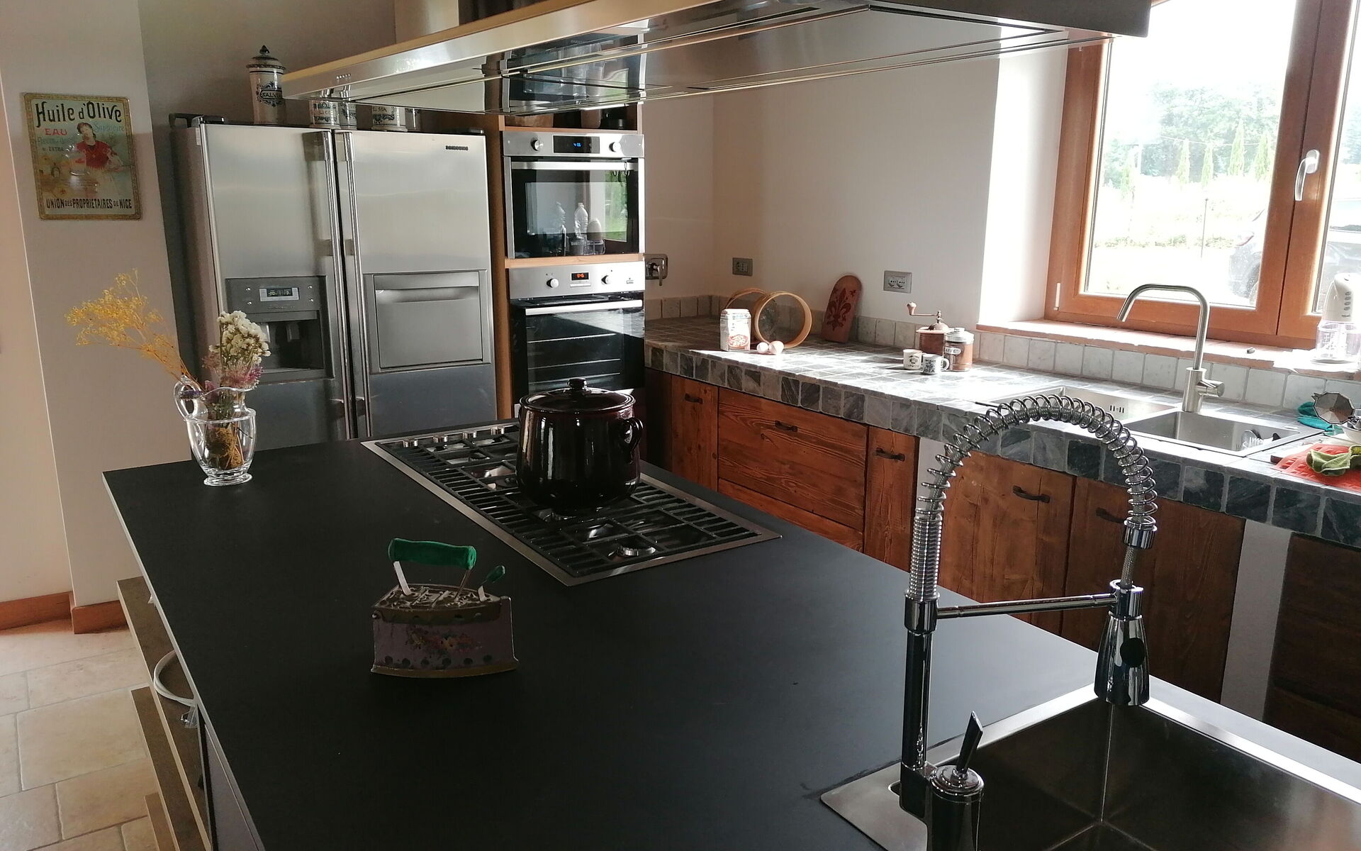 Keuken (20 m2): goed uitgeruste keuken, vaatwasser, ijskast, diepvriezer, magnetron, broodrooster, strijkijzer, italiaans koffiezetapparaat, WIFI internet, internet, tv, tv, mindervaliden ok, uitgang naar de tuin.