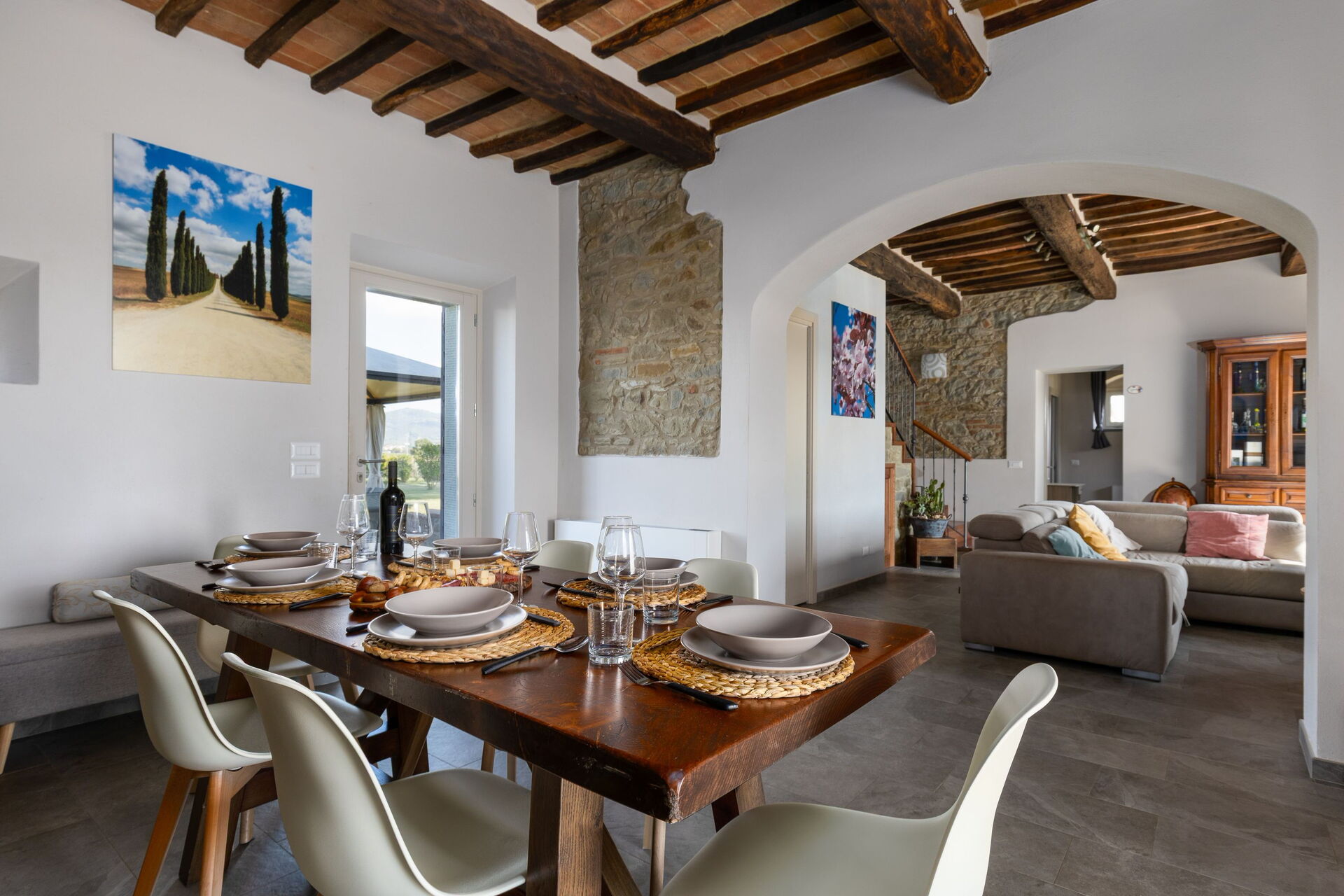 Deze villa is ideaal voor een ontspannen vakantie op korte afstand van Arezzo, Cortona, de dorpen van de Val d'Orcia en het meer van Trasimeno.