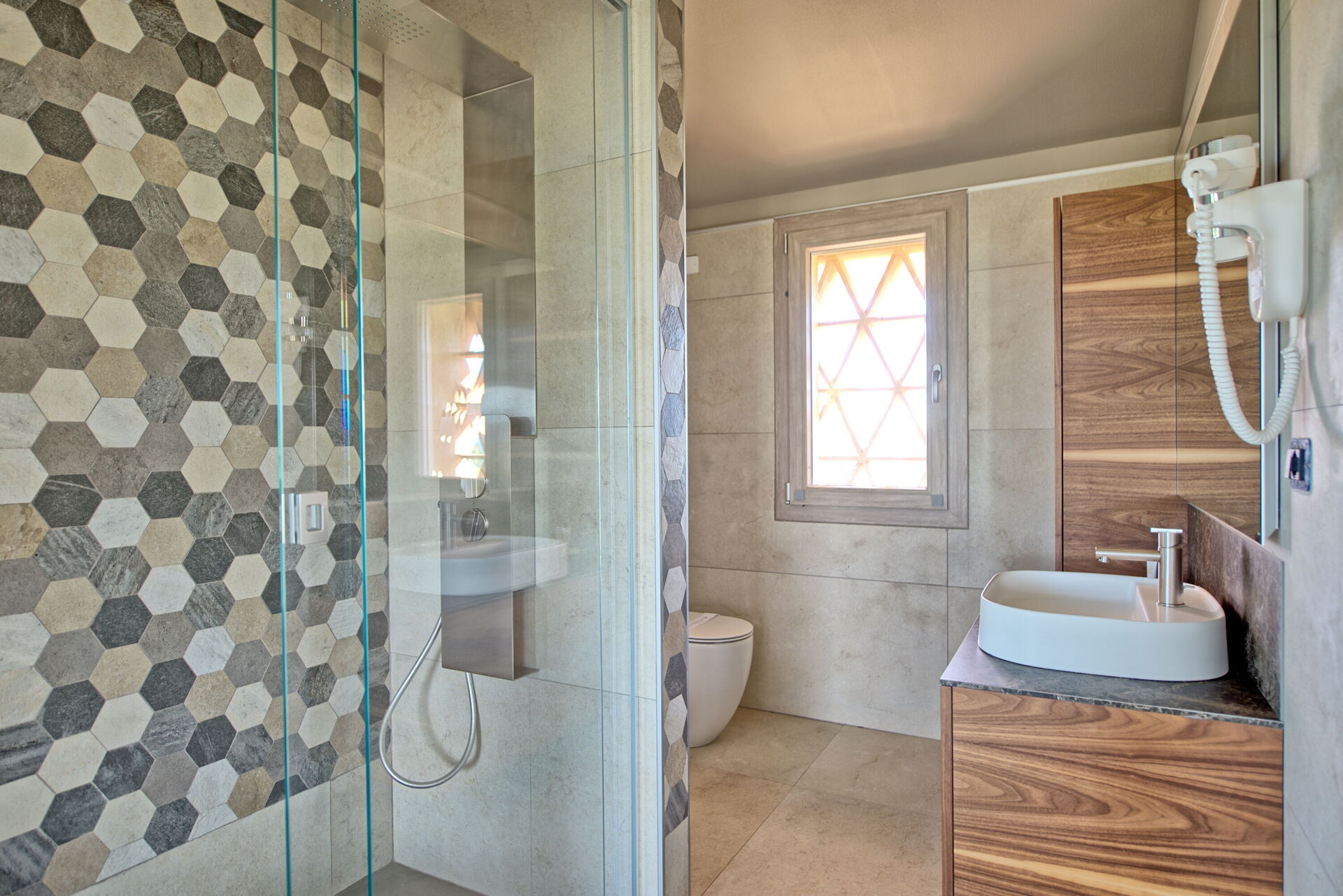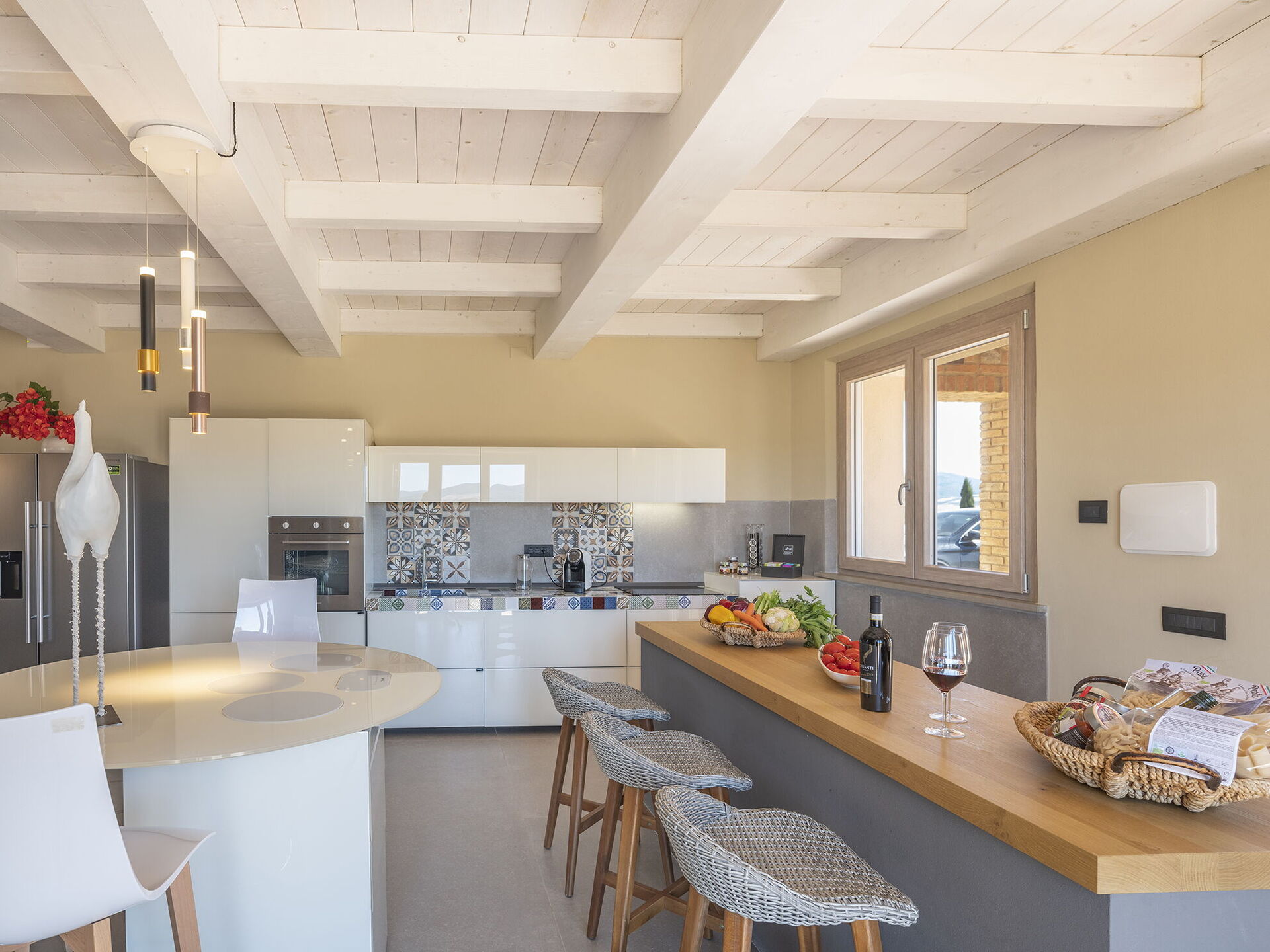 Begane grond: grote open woonkamer met panoramisch uitzicht, bestaande uit woonkamer, satelliet-tv en goed uitgeruste open keuken (oven, koelkast, wijnkoelkast, vaatwasser, Amerikaans koffiezetapparaat); kleine badkamer; wasruimte met wasmachine en droger.