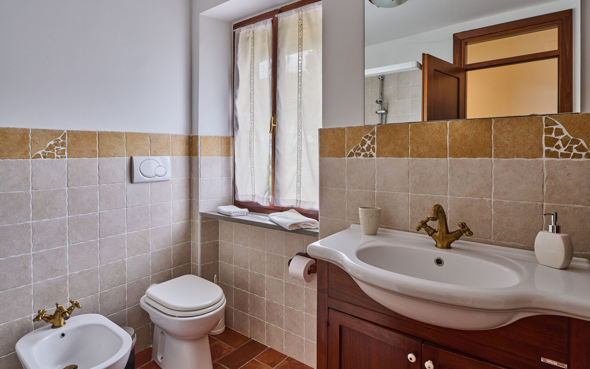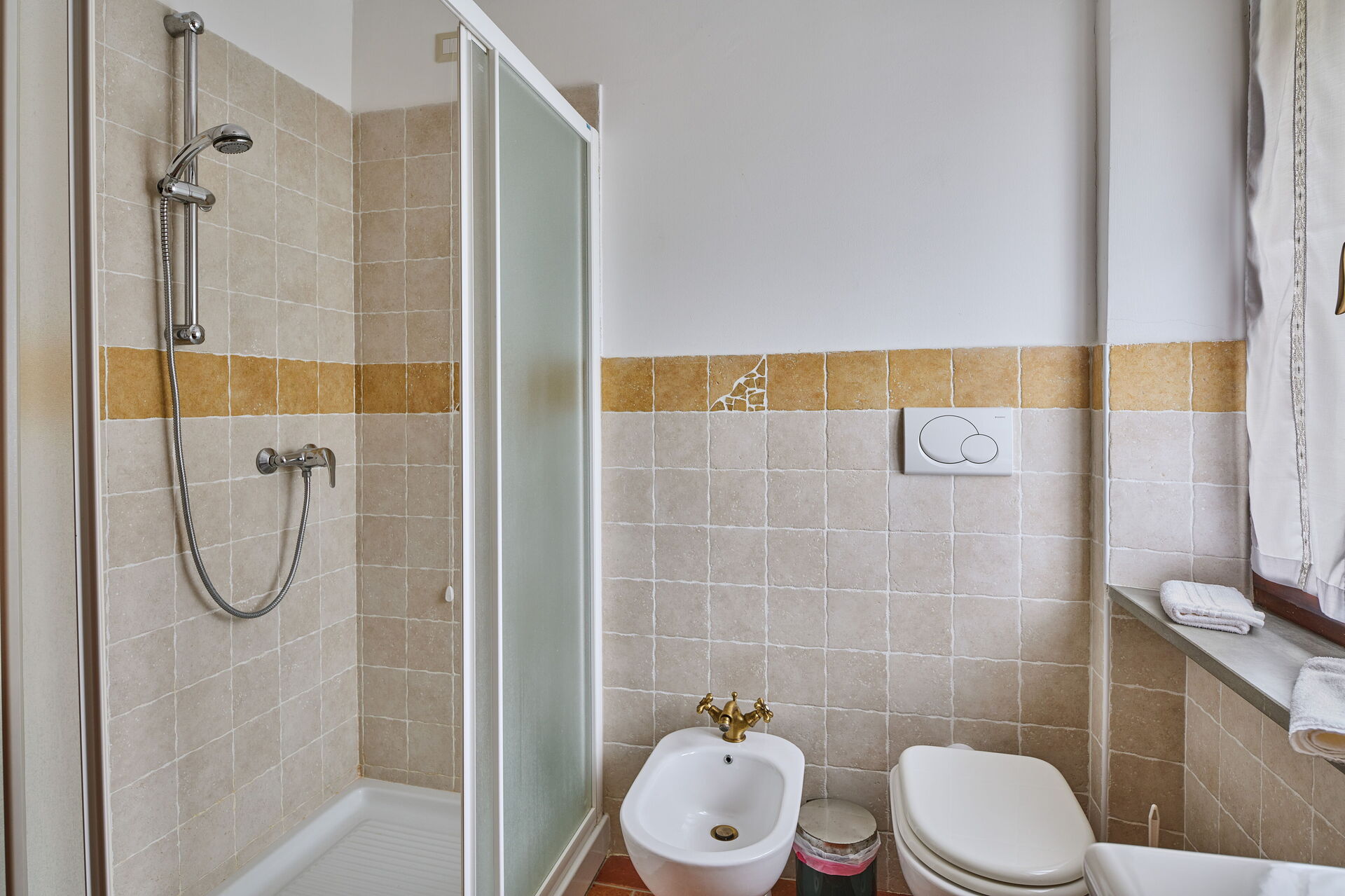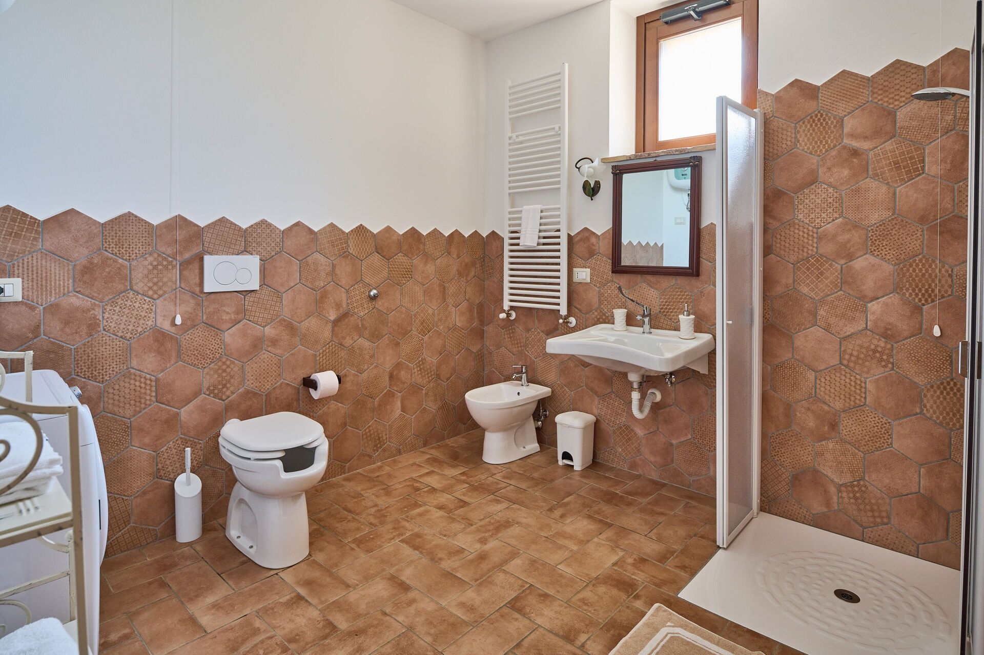 Badkamer 3 (10 m2): wastafel, toilet , bidet, douche, haardroger, wasmachine, hor.