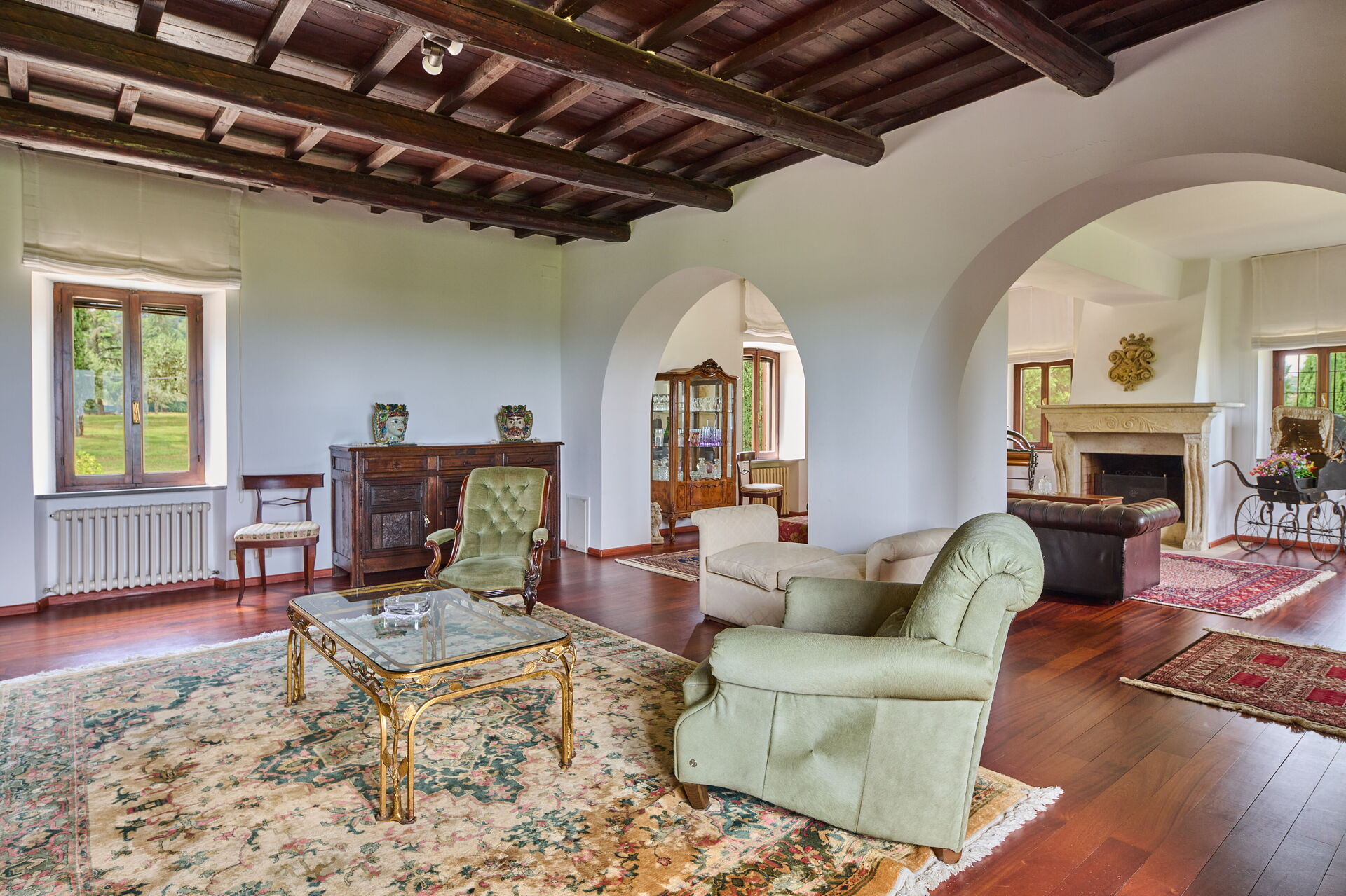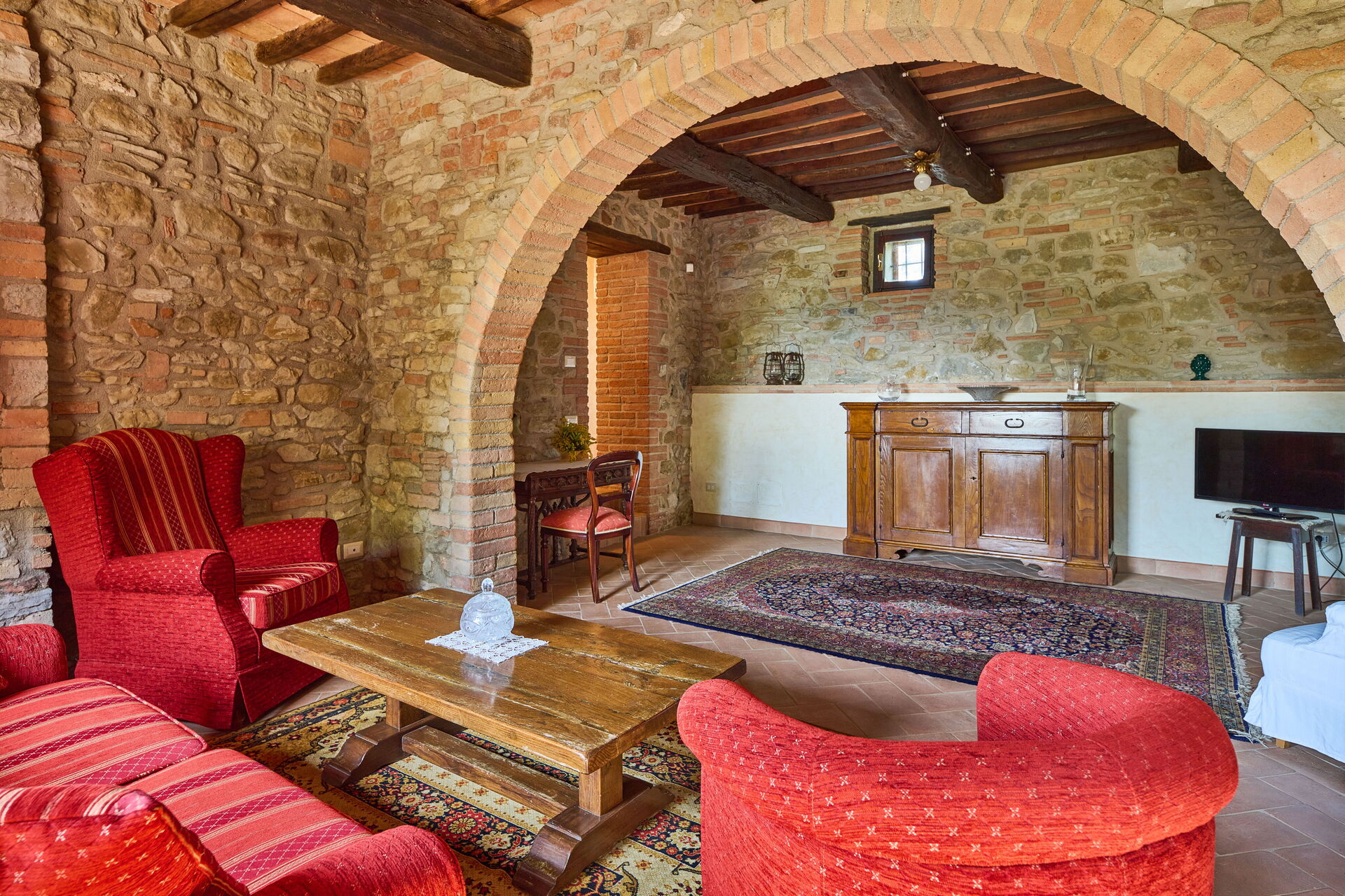 Woonkamer (70 m2): twee banken (personen: 6), vier fauteuils, open haard, WIFI internet, tv.