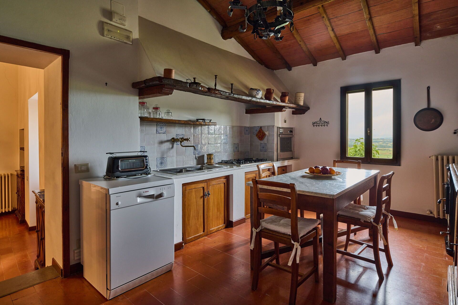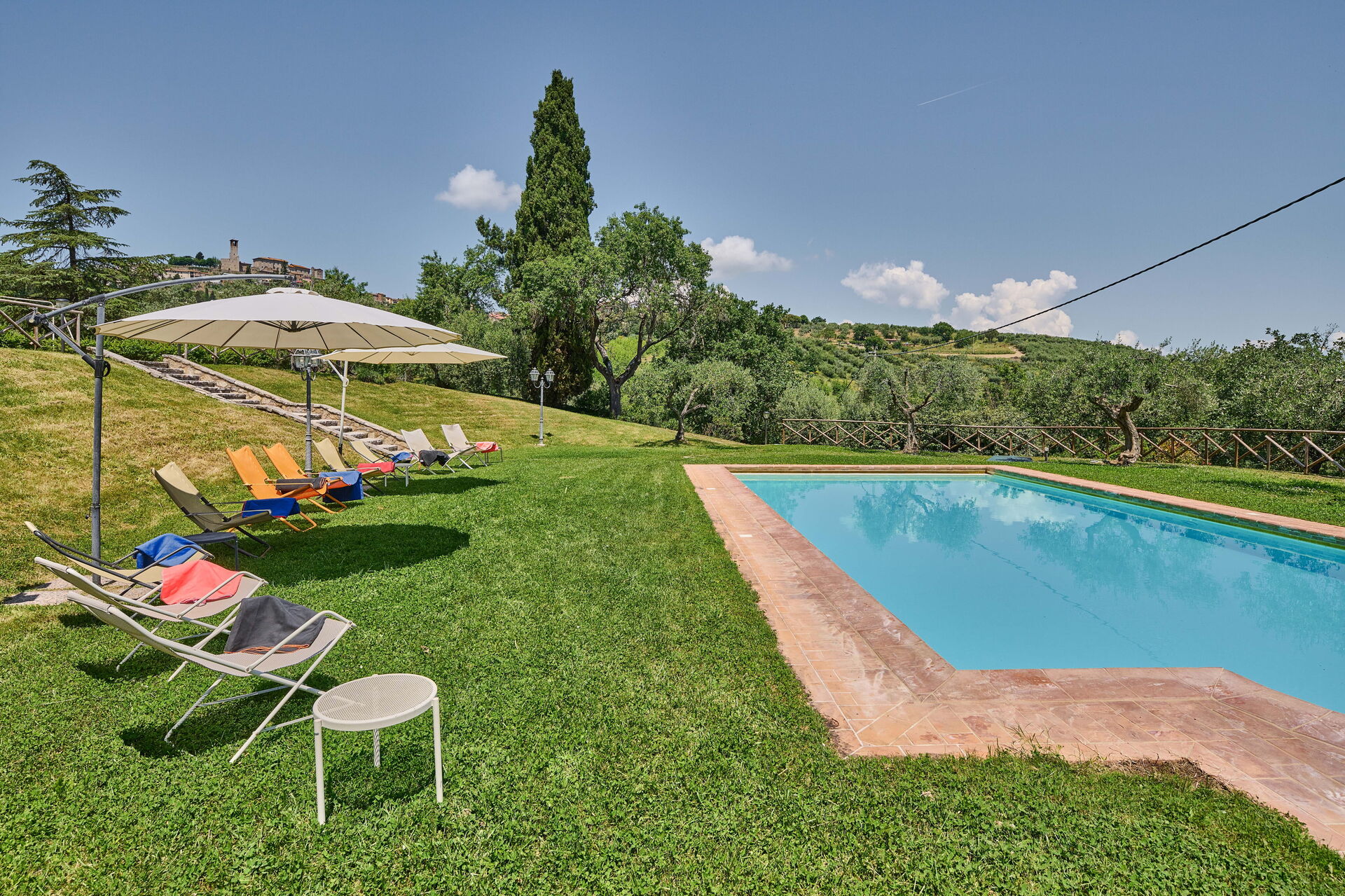 Zodra u aankomt te Villa Conte Jacopo vindt u een mooie, schone en goed onderhouden woning met uitzicht over de heuvels ideaal voor een rustige vakantie in Umbrië. Voor uw vermaak vindt u een privé zwembad waar u kunt uitrusten terwijl u geniet van een heerlijk koel drankje na een hectische dag winkelen. Ook zijn er buiten beschikbaar een barbecue, terras en speeltuin. Eten met vrienden en familie is een grote onderdeel van de Italiaanse cultuur. Maak gebruik van de goed uitgeruste keuken om maaltijden te bereiden met lokale producten terwijl u op vakantie bent. De keuken biedt o.a. een koffiezetapparaat, magnetron oven, broodrooster, fornuis en ijskast, en natuurlijk ook voldoende servies en bestek voor minstens tien personen. Eet buiten net zoals een echte Italiaan, een patio met tuinmeubilair is perfect om te genieten van het heerlijke eten, de familie en het fraaie Italiaanse klimaat.
