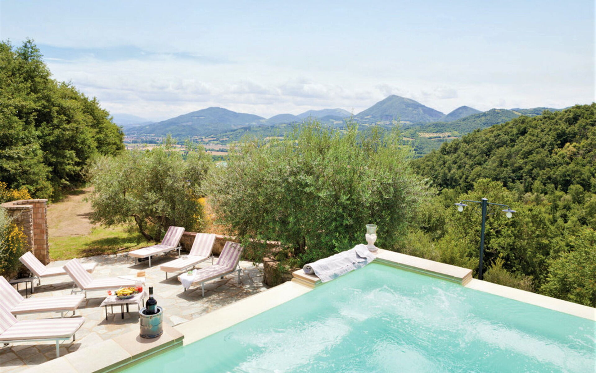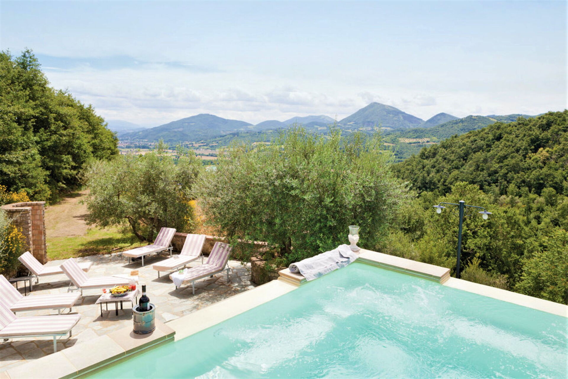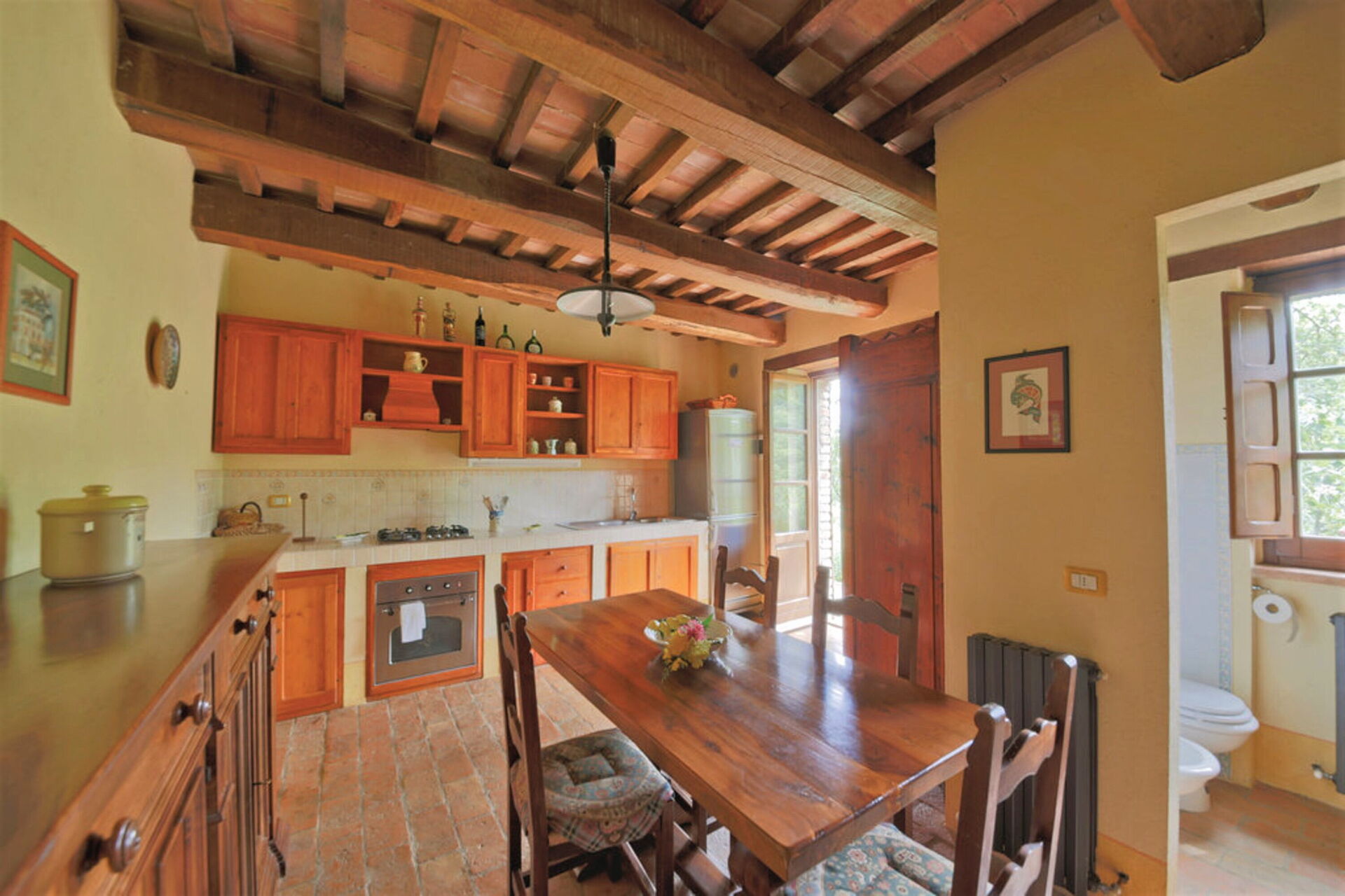 Zodra u aankomt wordt u welkom geheten door de eigenaar of beheerder en vindt u een fraaie, schone en goed onderhouden woning met uitzicht over de heuvels ideaal voor een ontspannen vakantie in Umbrië. Hoe u de dagen ook doorbrengt - winkelen, musea bezoek, met excursies of rijdende door het prachtige landschap, zodra u thuis komt kunt u ontspannen samen met familie en vrienden bij het zwembad voor een perfecte afsluiting van nog weer een dag in Umbrië. Ook zijn er buiten beschikbaar een barbecue, jacuzzi, patio en tennisbaan. Er is een keuken met o.a. magnetron oven en ijskast en natuurlijk voldoende servies en bestek voor tot 16 personen. Als u liever buiten eet is er een patio waar u van het weer kan genieten terwijl u buiten eet.