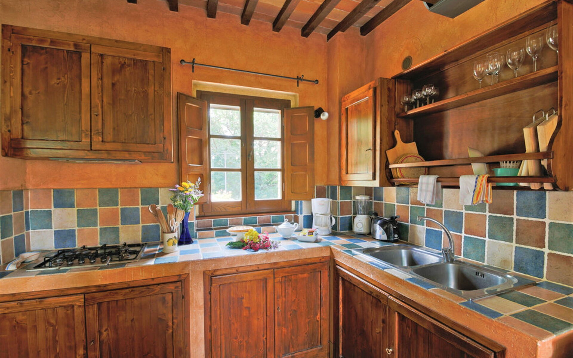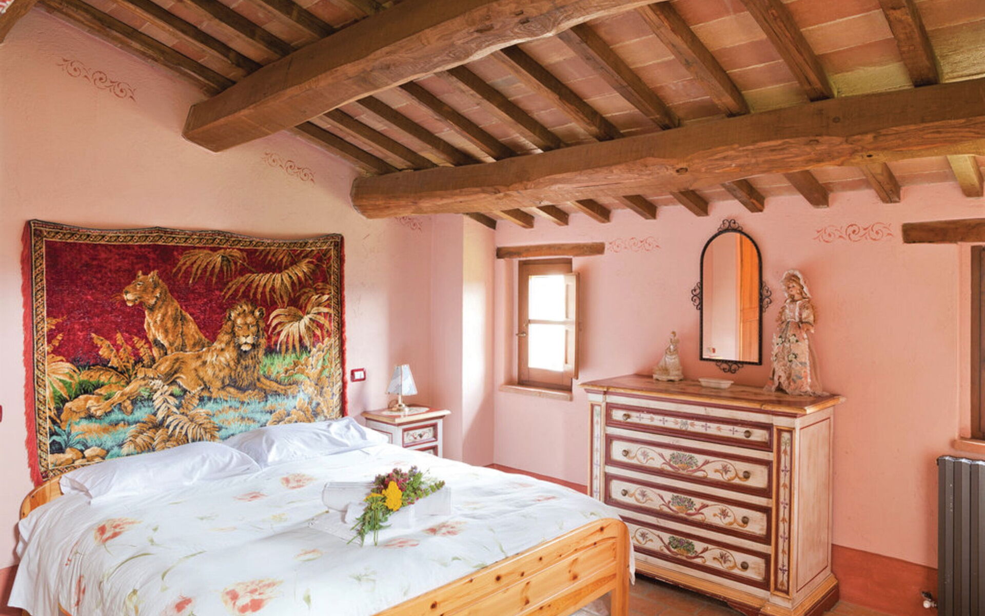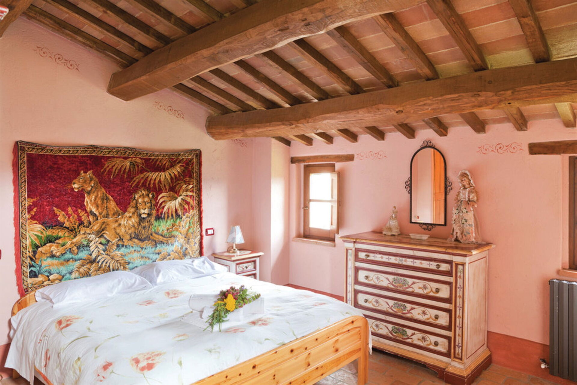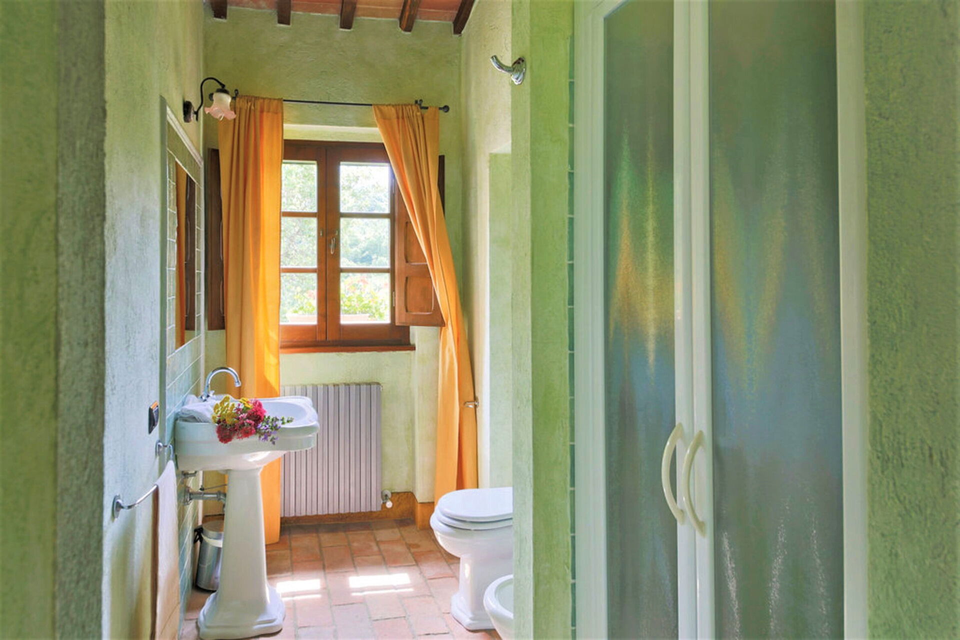 Zodra u aankomt wordt u welkom geheten door de eigenaar of beheerder en vindt u een fraaie, schone en goed onderhouden woning met uitzicht over de heuvels ideaal voor een ontspannen vakantie in Umbrië. Hoe u de dagen ook doorbrengt - winkelen, musea bezoek, met excursies of rijdende door het prachtige landschap, zodra u thuis komt kunt u ontspannen samen met familie en vrienden bij het zwembad voor een perfecte afsluiting van nog weer een dag in Umbrië. Ook zijn er buiten beschikbaar een barbecue, jacuzzi, patio en tennisbaan. Er is een keuken met o.a. magnetron oven en ijskast en natuurlijk voldoende servies en bestek voor tot 16 personen. Als u liever buiten eet is er een patio waar u van het weer kan genieten terwijl u buiten eet.