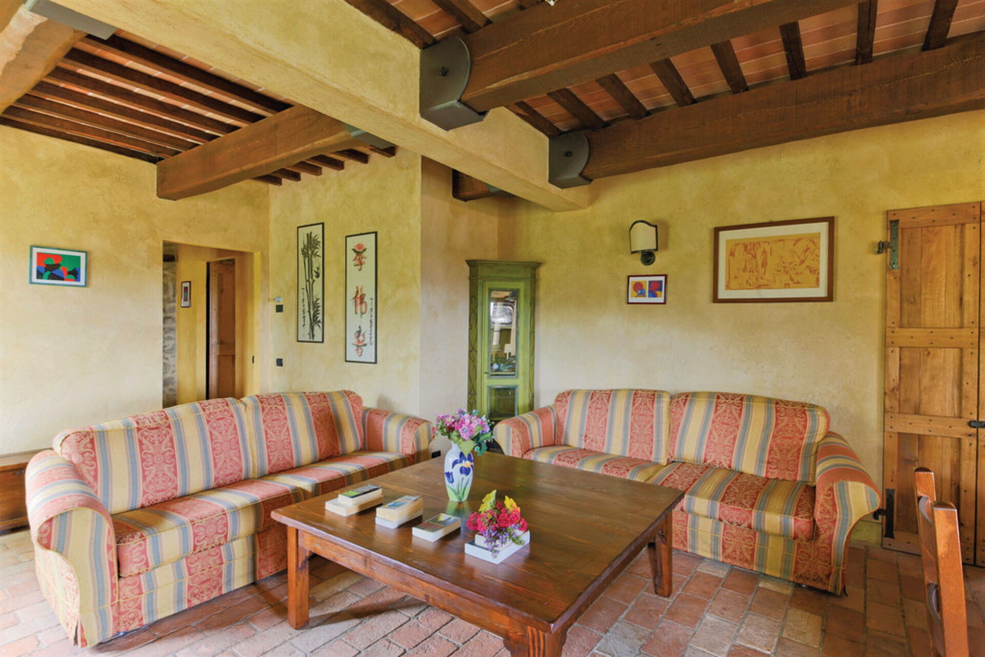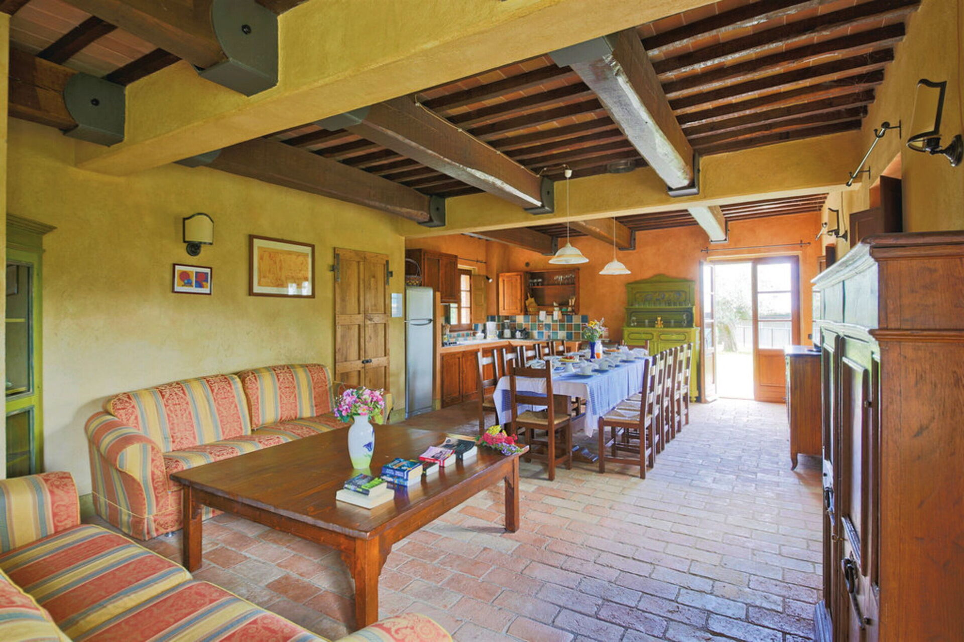 Woonkamer: twee banken, eettafel (personen: 12), WIFI internet.