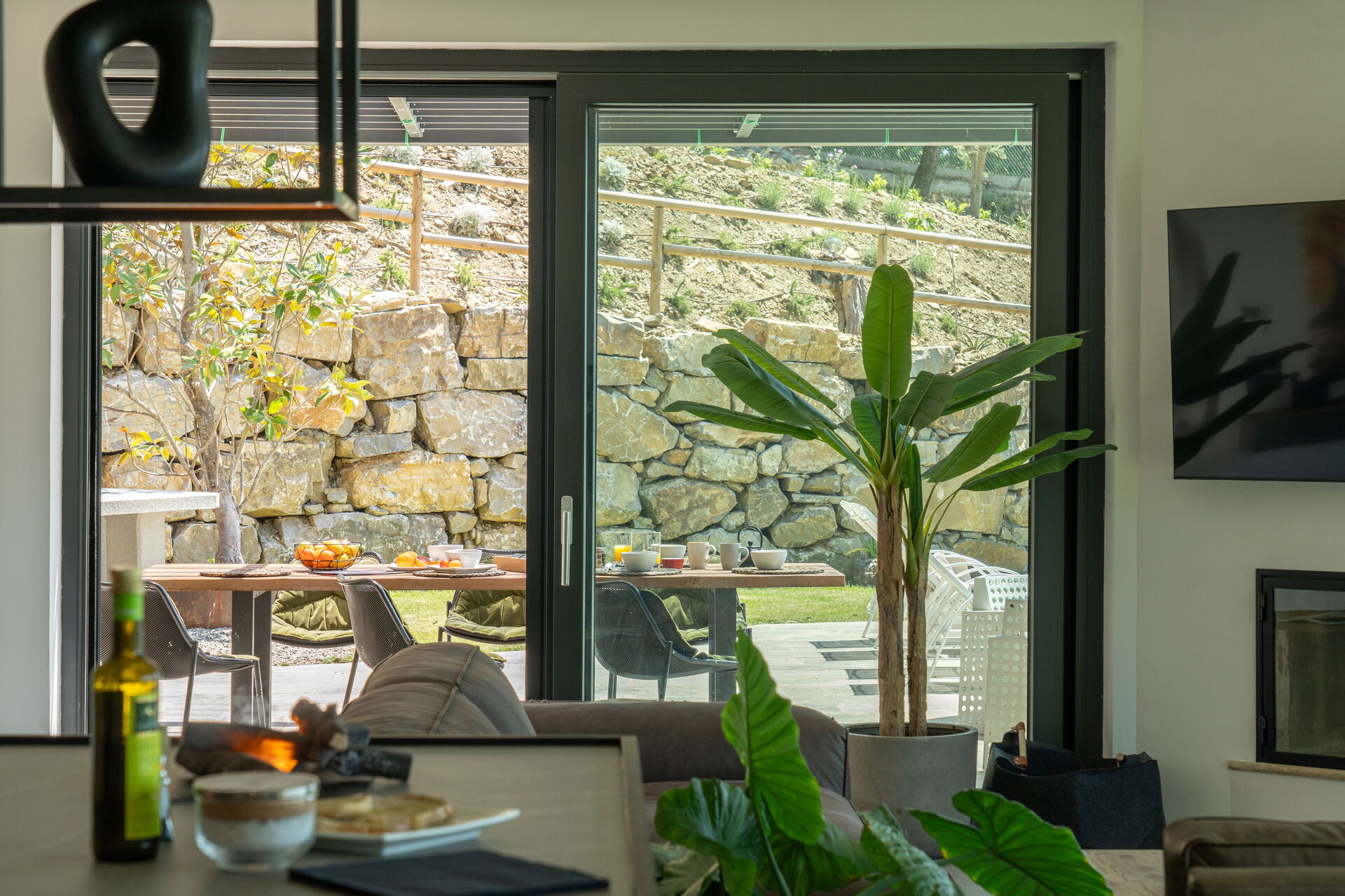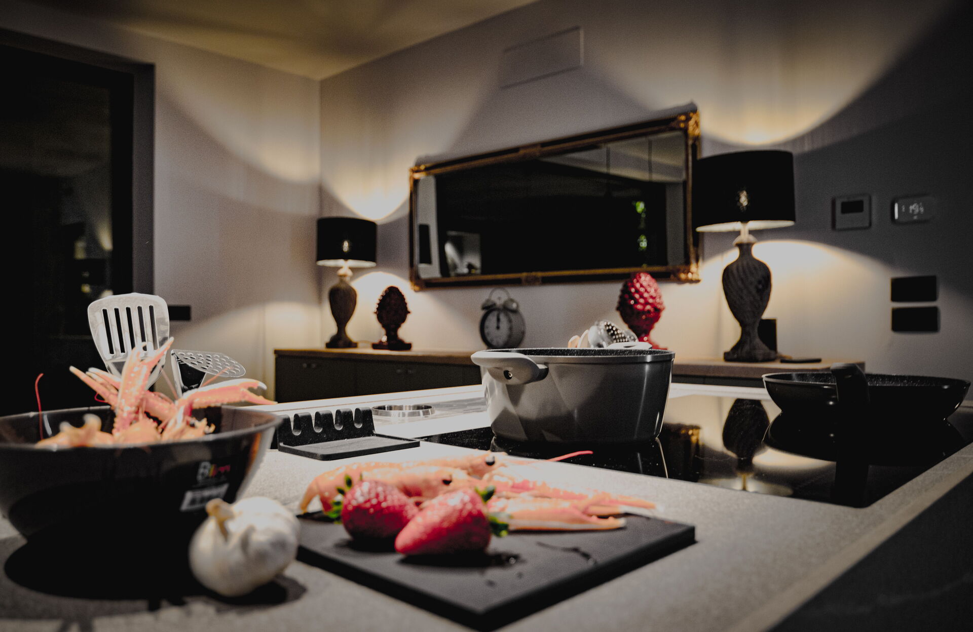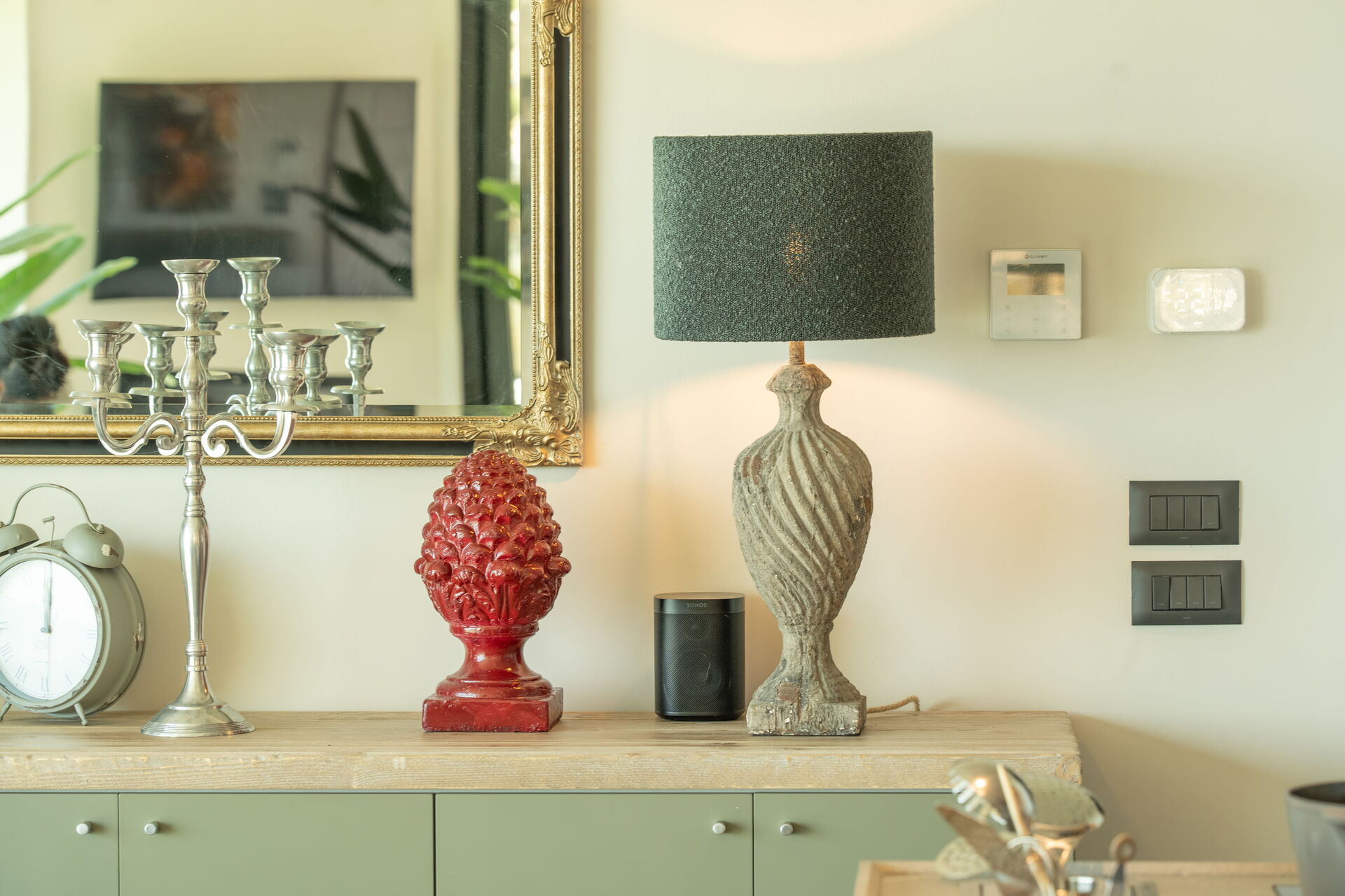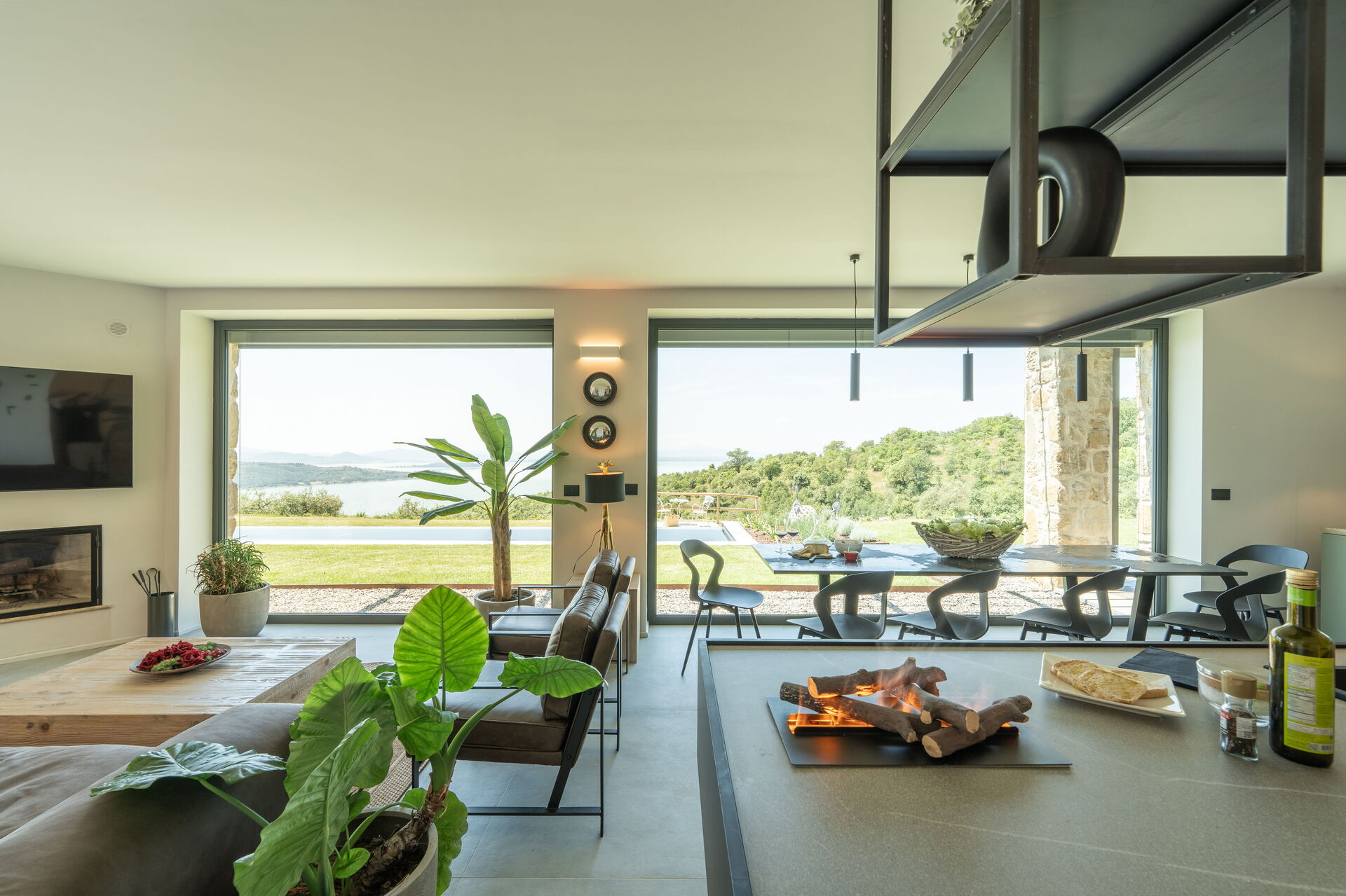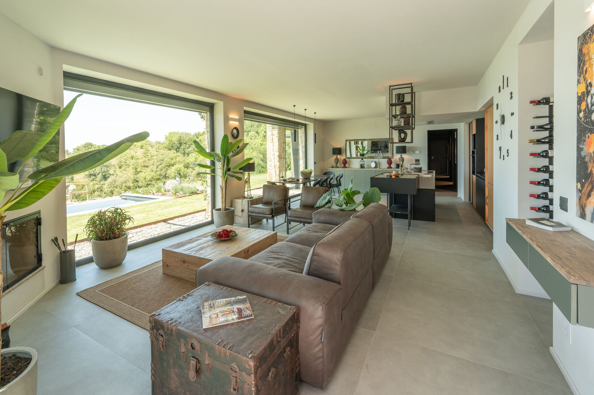 Open ruimte: twee banken (personen: 8), open haard, eettafel (personen: 10), WIFI internet, airconditioning, satelliet tv, tv, ijskast, kookplaat, diepvriezer, vaatwasser, strijkijzer, goed uitgeruste keuken, magnetron, oven, broodrooster, italiaans koffiezetapparaat, koffiezetapparaat, uitgang naar de tuin.