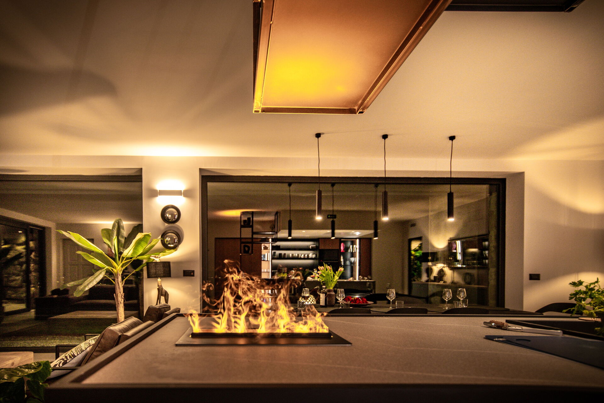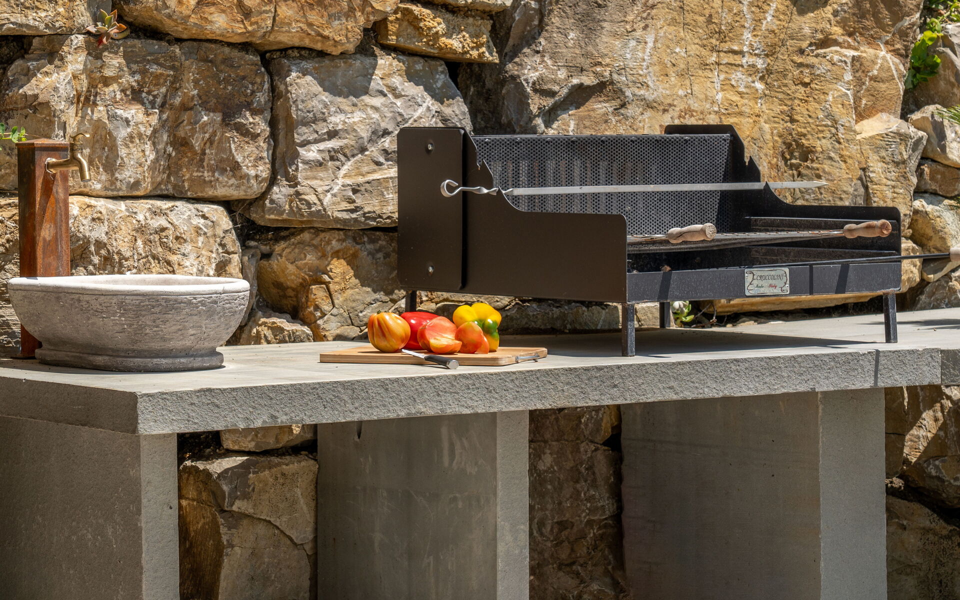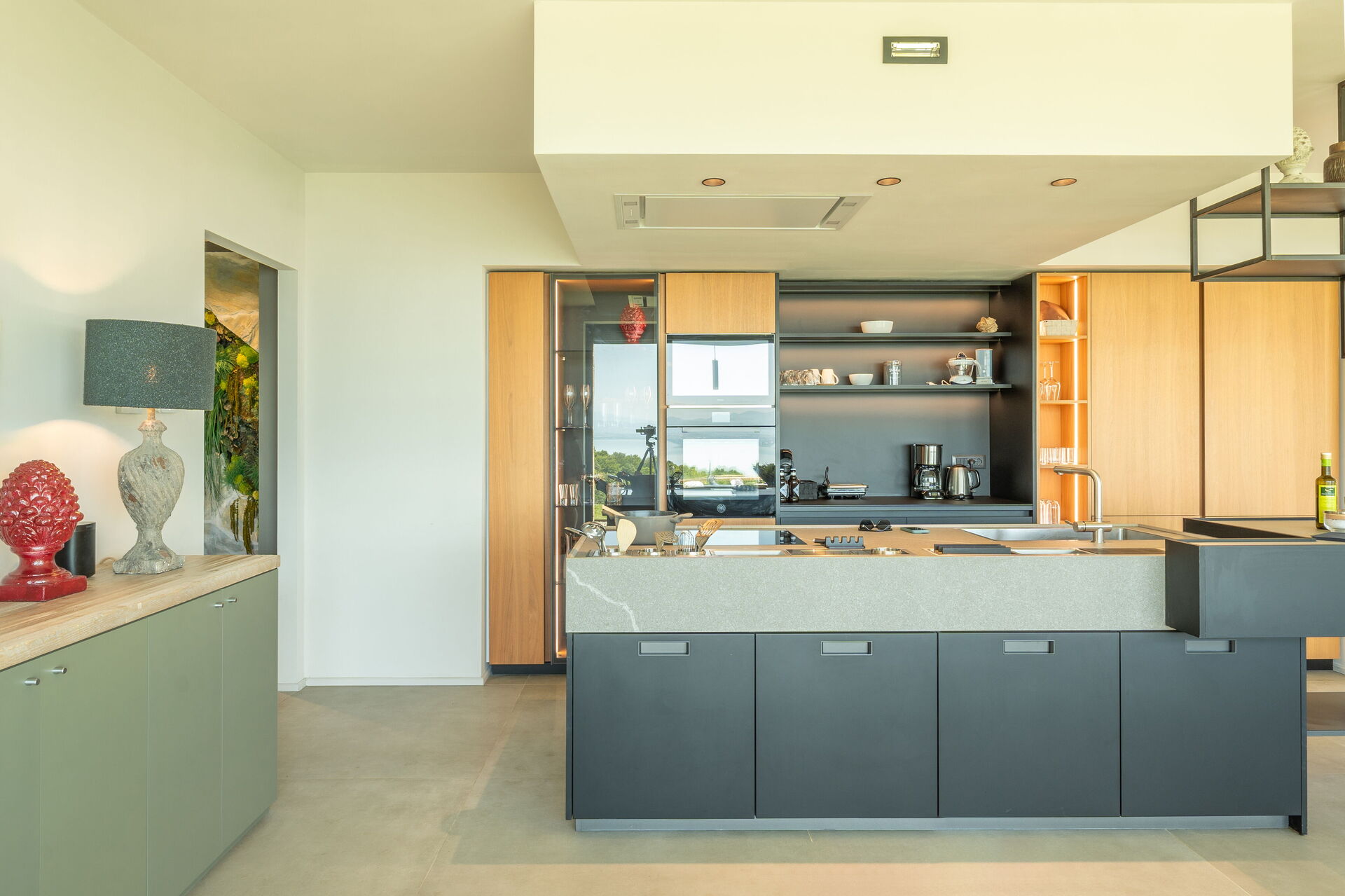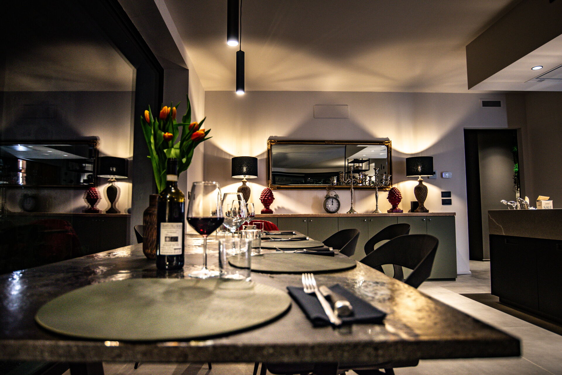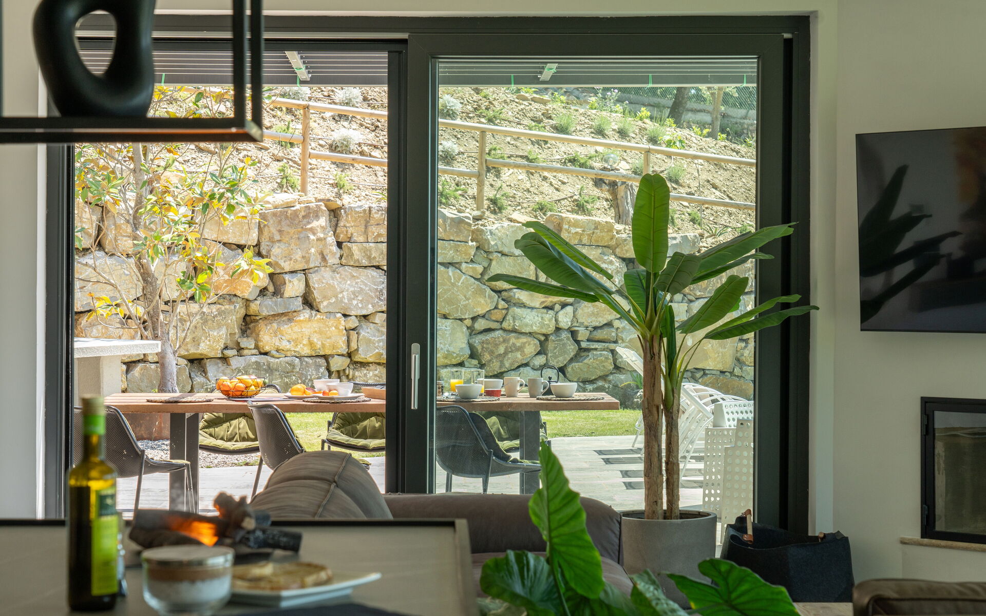Open ruimte: twee banken (personen: 8), open haard, eettafel (personen: 10), WIFI internet, airconditioning, satelliet tv, tv, ijskast, kookplaat, diepvriezer, vaatwasser, strijkijzer, goed uitgeruste keuken, magnetron, oven, broodrooster, italiaans koffiezetapparaat, koffiezetapparaat, uitgang naar de tuin.