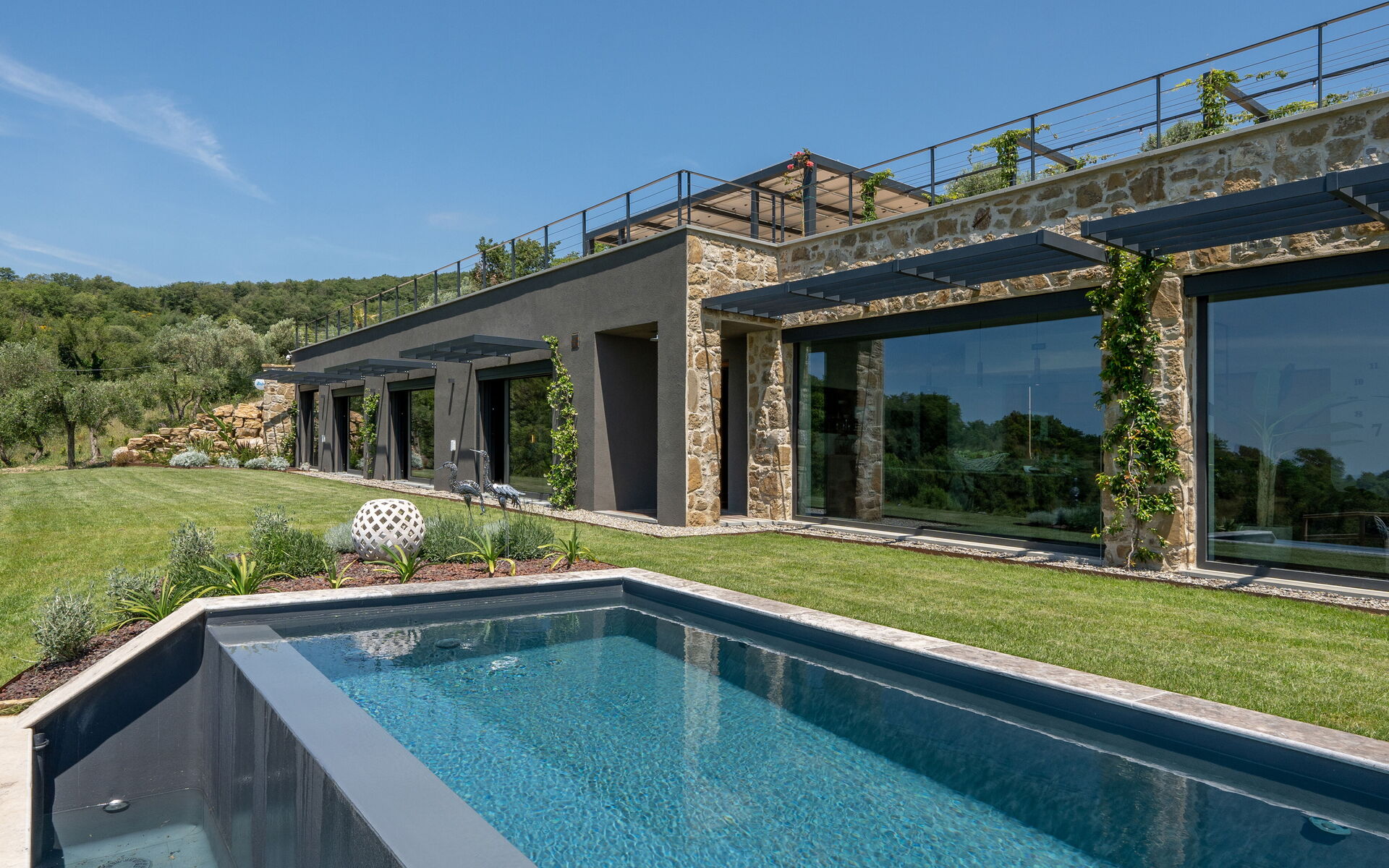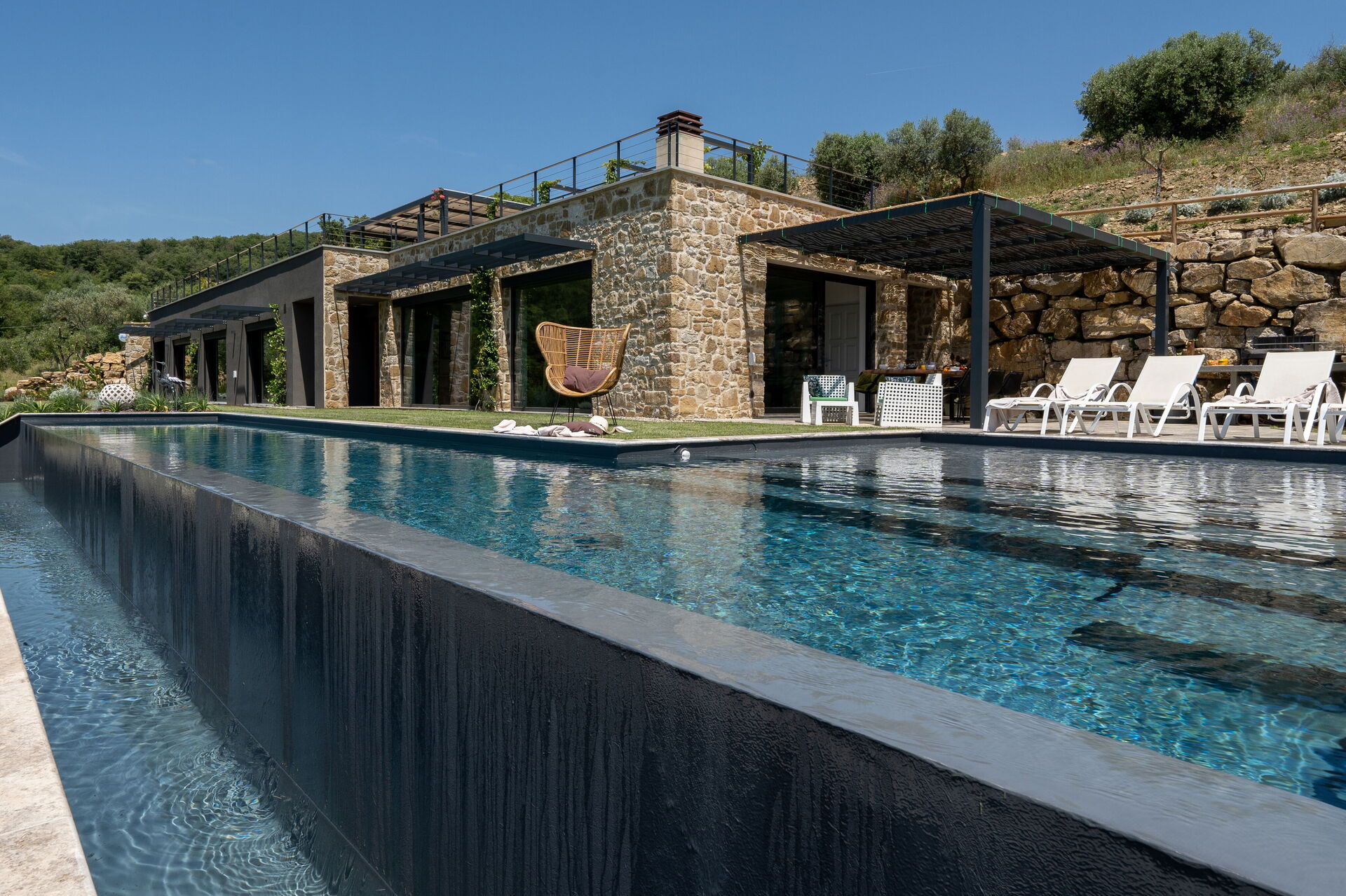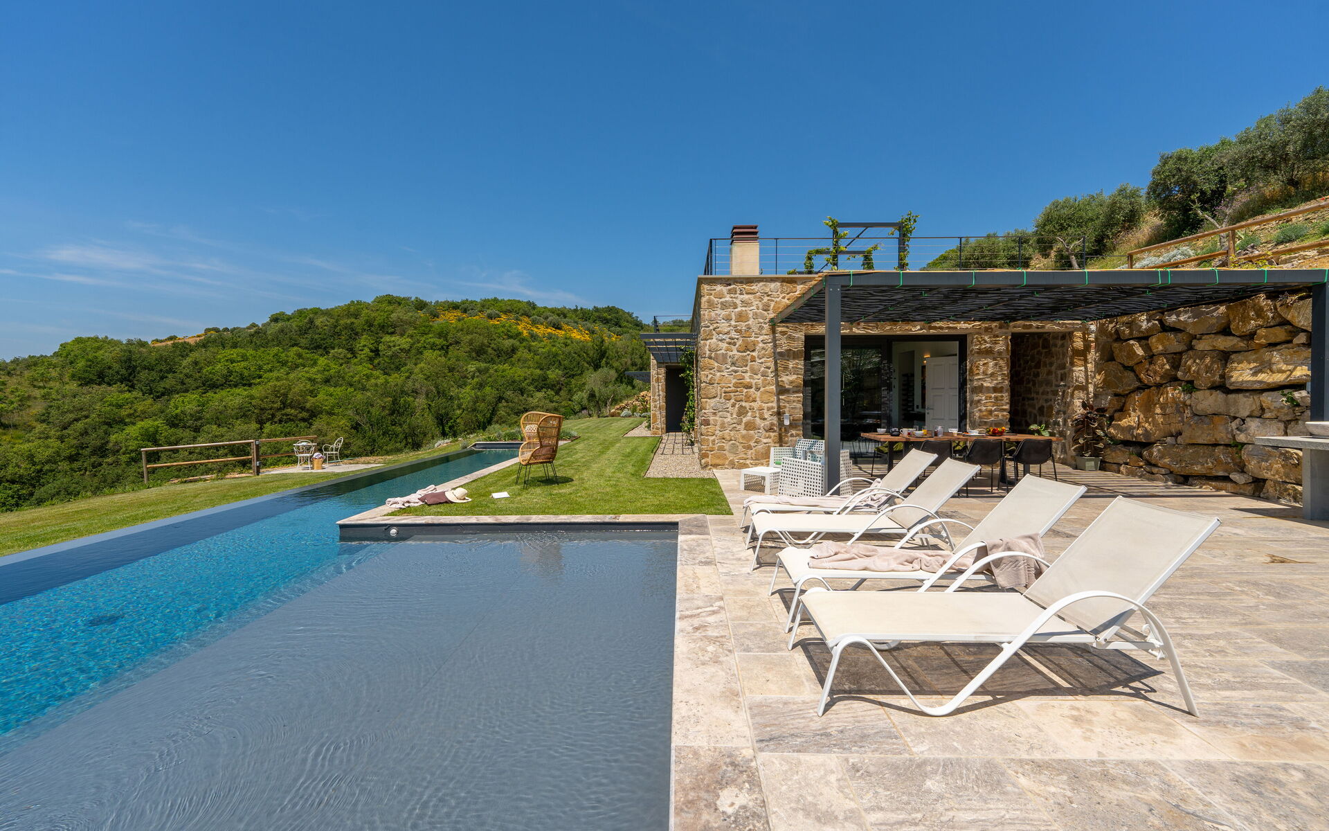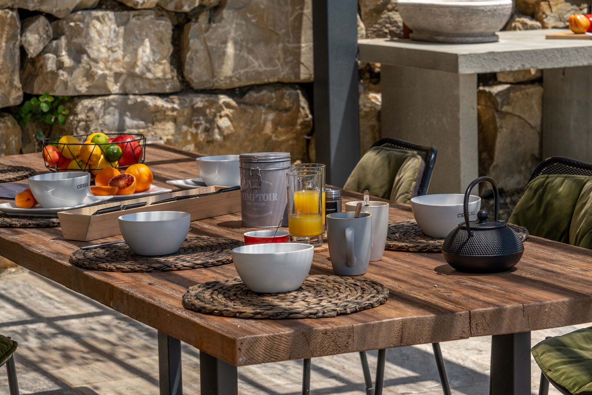 Tuin: zwembad (privé, breedte: 16.5m, lengte: 2.7m, diepte: 1.5m, buiten, verwarmd), douche, WIFI internet, barbecue, dineren in de buitenlucht, eettafel (personen: 10), tuinmeubilair, ligstoel, omheind grondstuk.