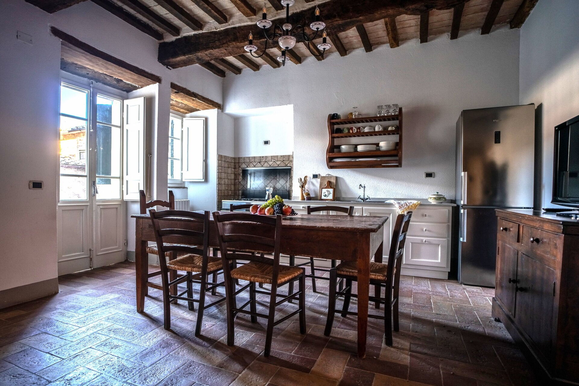 Keuken: eettafel (personen: 6), ijskast, diepvriezer, kookplaat, oven, broodrooster, italiaans koffiezetapparaat, open haard, WIFI internet.